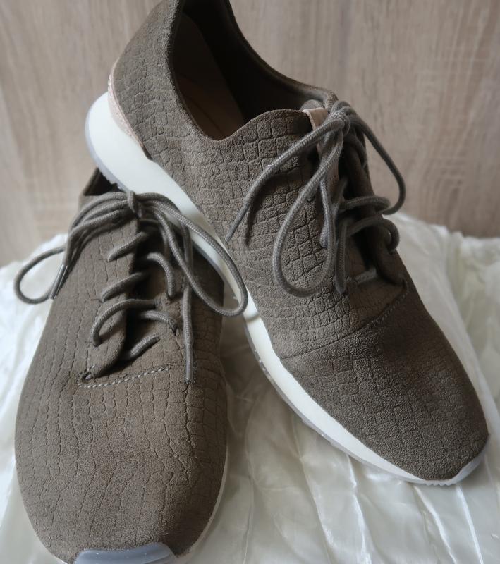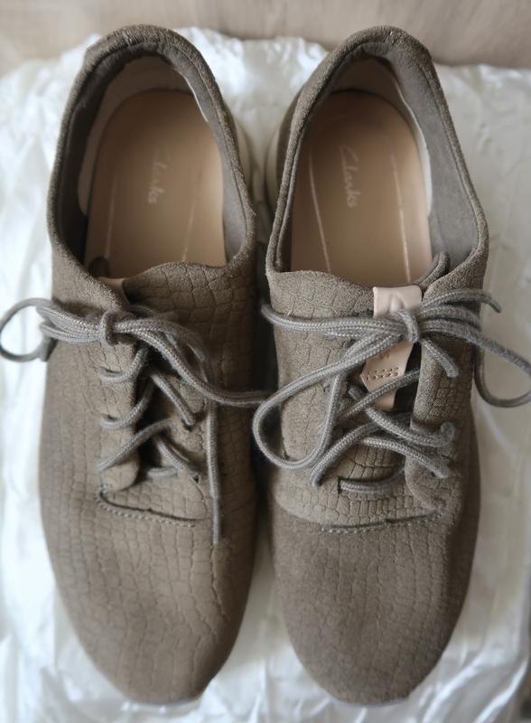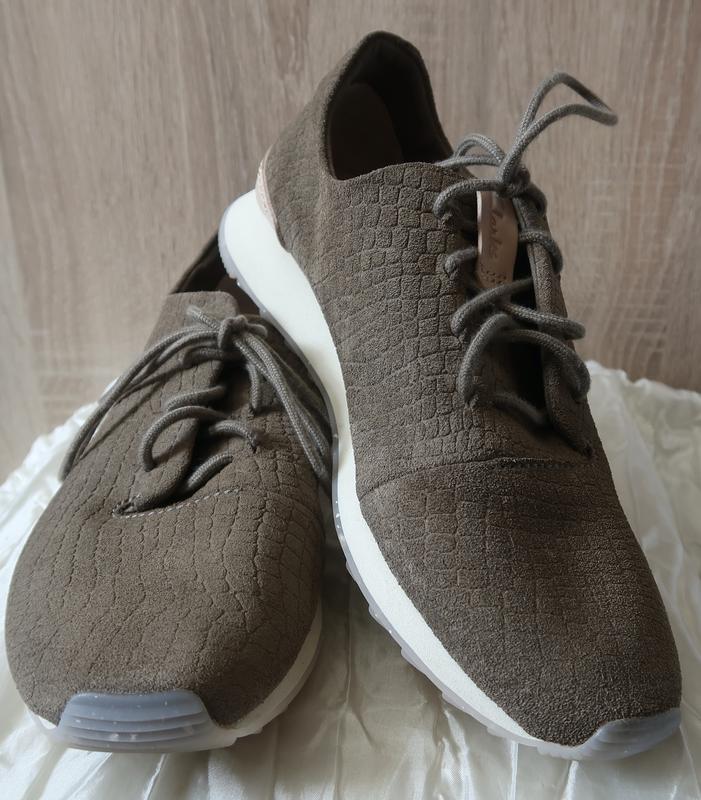 Кросівки туфлі замшеві хакі легкі Clarks р-р 39,5 26 смДовжина устілки 26 смширина 9 смСтан: б/у, ідеальний, як на фото