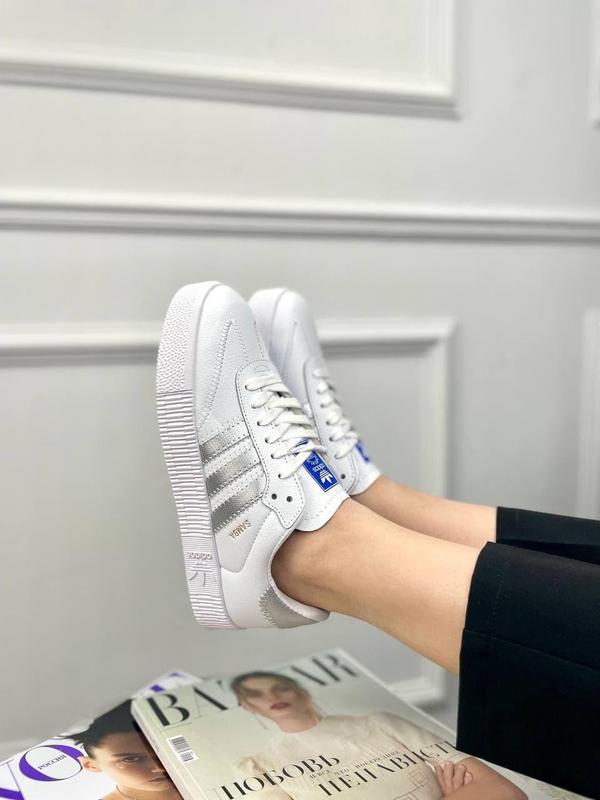 Кросівки Adidas Samba White Silver. Матеріал верху натуральна шкіра. Матеріал підошви гума. Колір моделі білий, срібний. Ці кросівки підійдуть під сезон всесезонні. Ці кросівки будуть служити вам довго і радувати Вас.