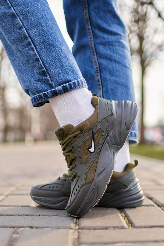 Круті жіночі кросівки nike orange m2k tekno olive хакі з сірим