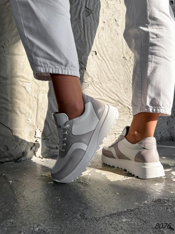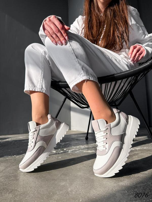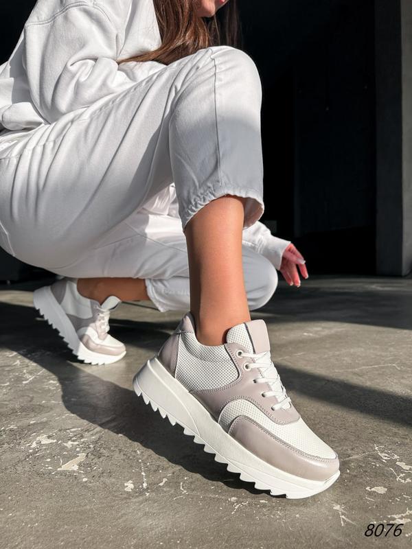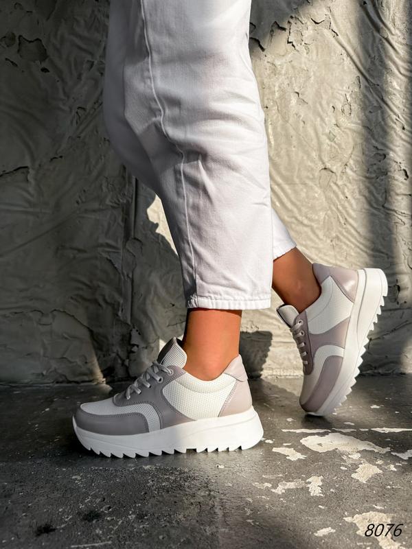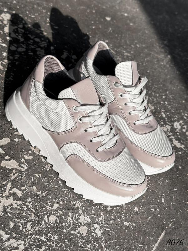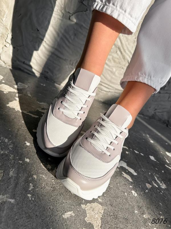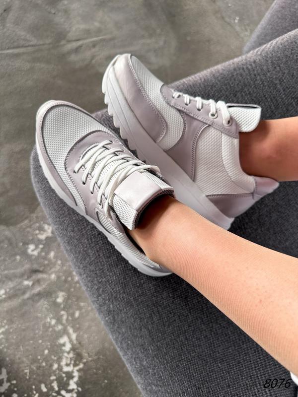 Кросівки жіночі Mona білі + блідо лавандовий натуральна шкіра