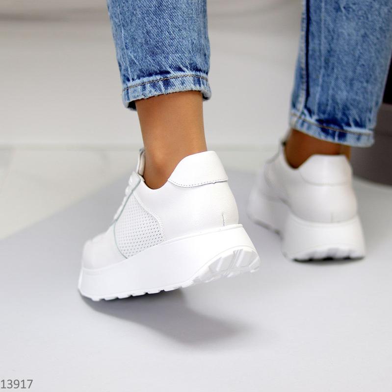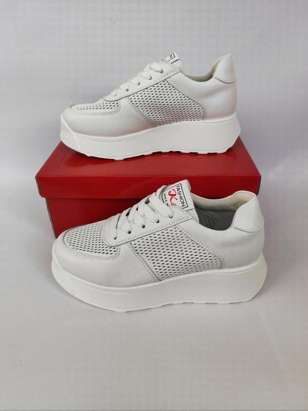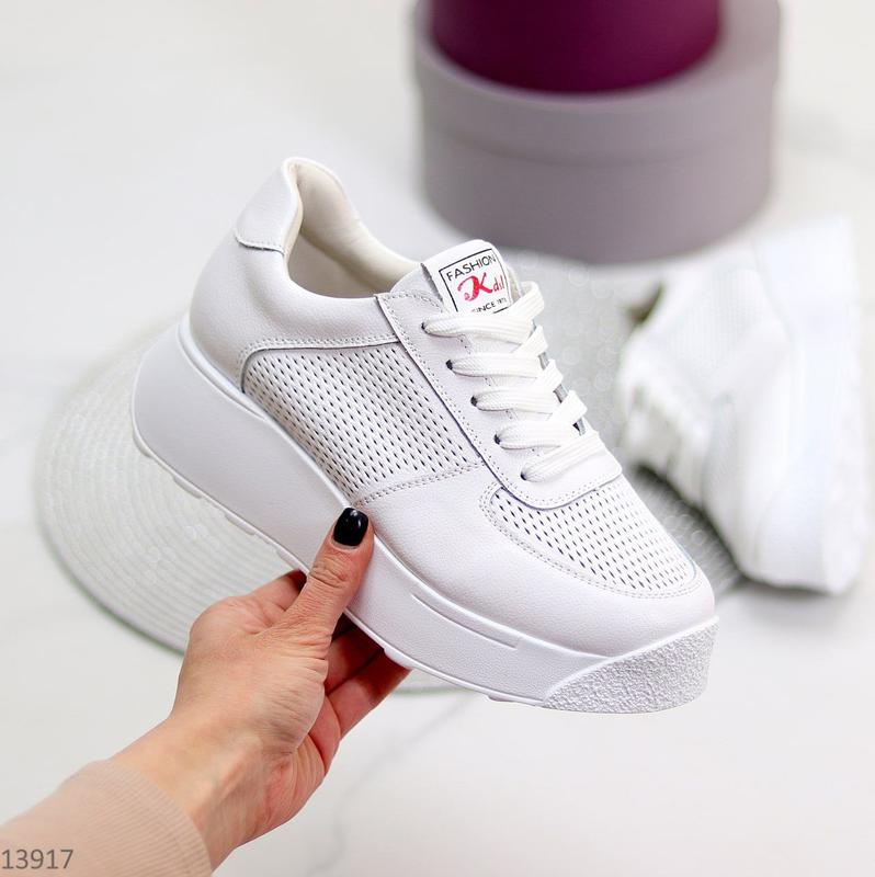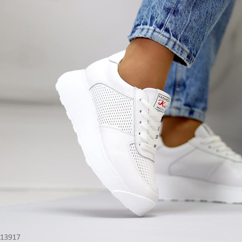 Жіночі білі кросівки з натуральної шкіри (Флотар) з наскрізною перфорацією. Підошва – 4,5см/3см