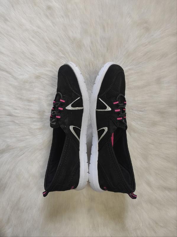 Состояние идеальное,лишь на подошве небольшое светлое пятнышко сзади,в глаза не кидается. Материал плотненький и мягкий,эко нубук. Спереди немного сеткой,вместо шнурков -резинки.Легкие,безумно удобные с улучшенной комфортной стелькой.Цена 899грн