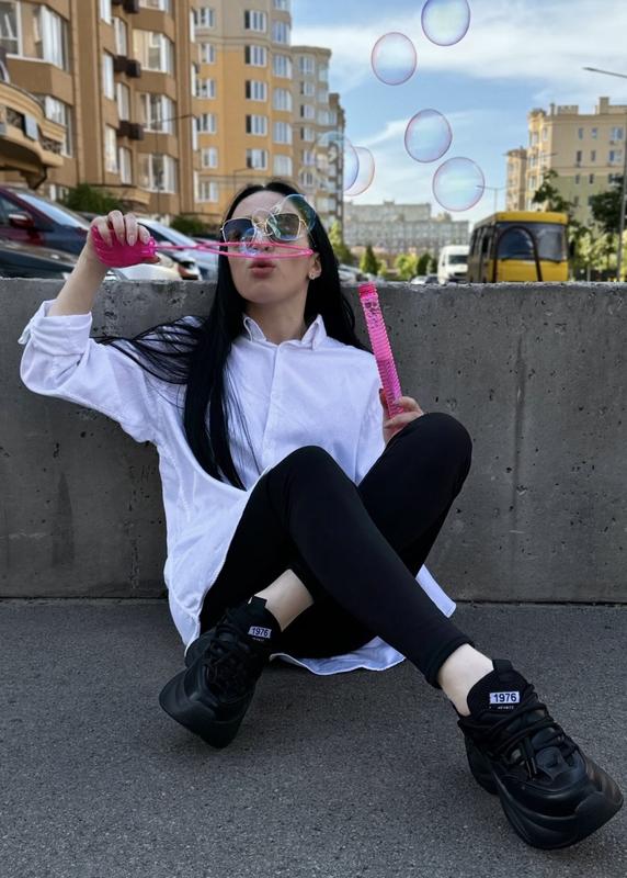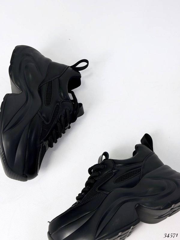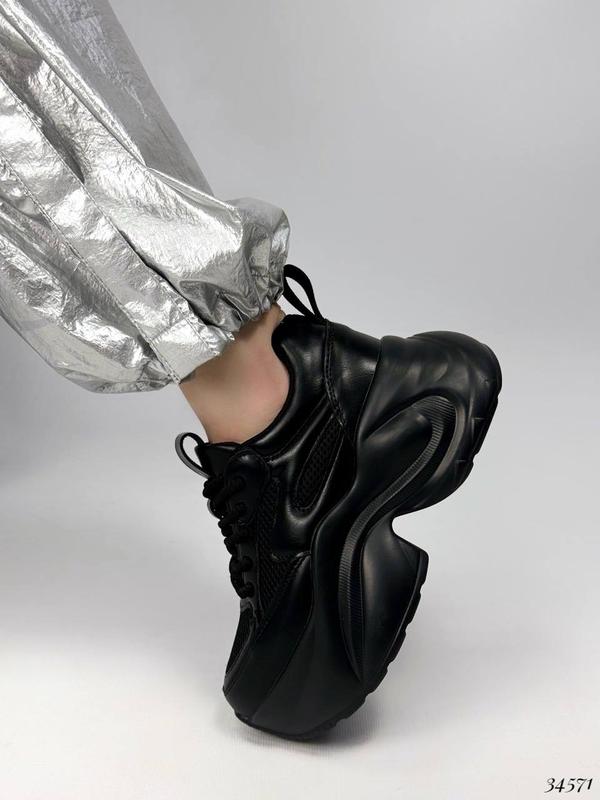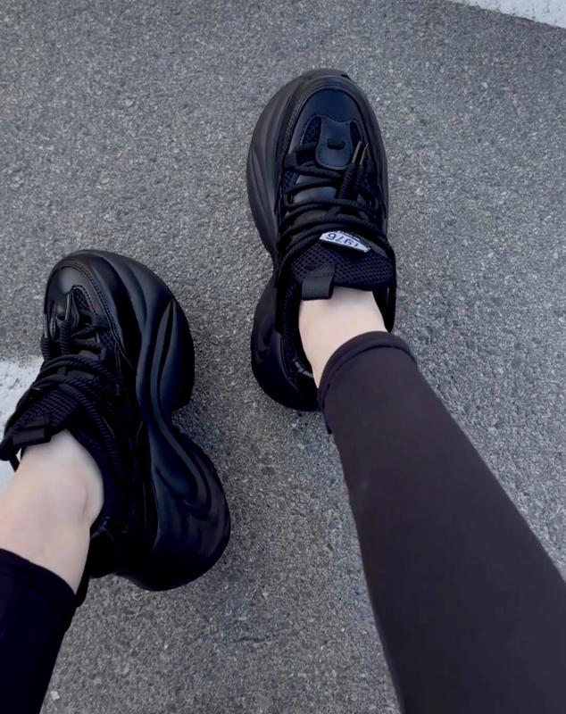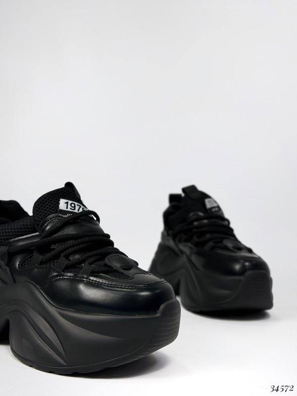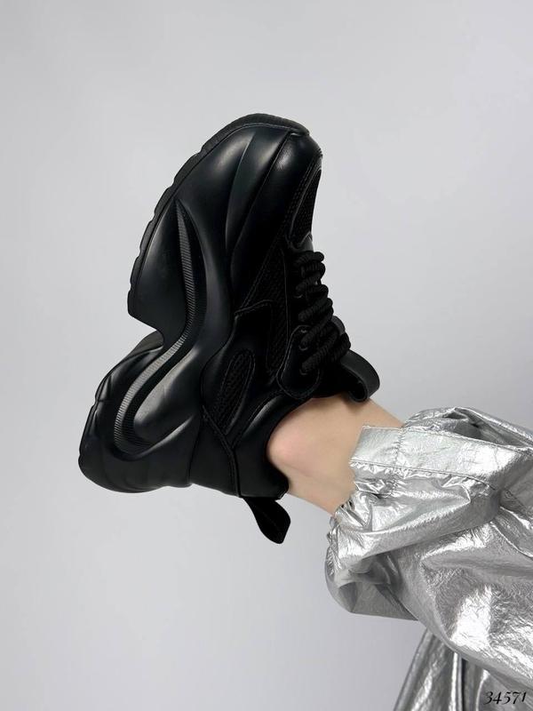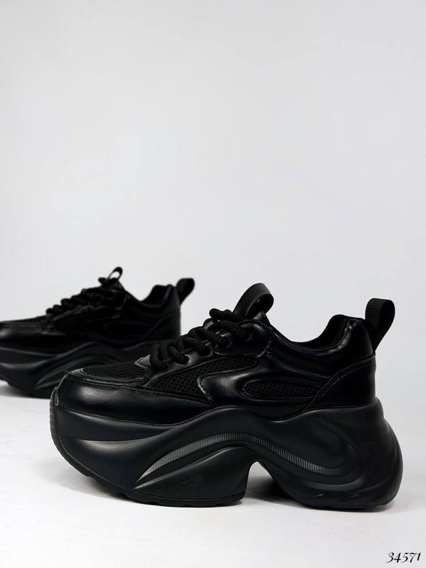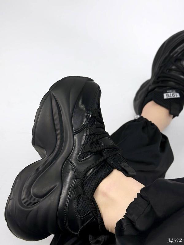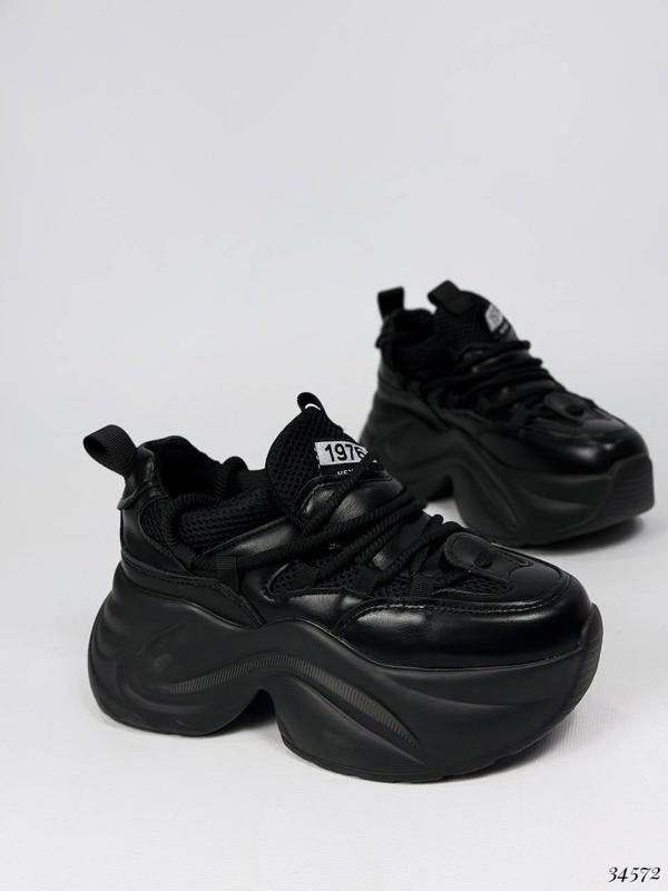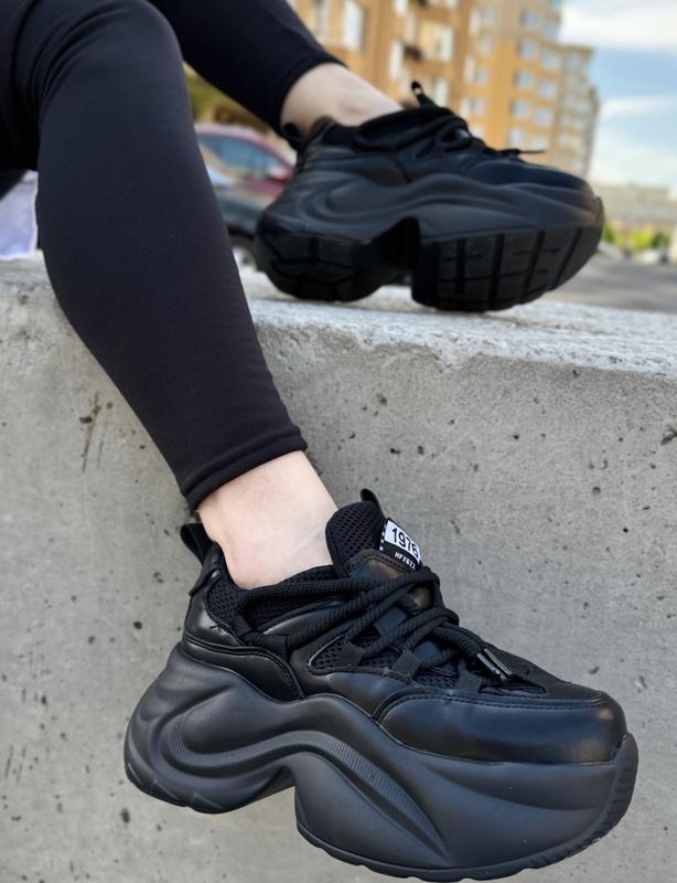 Стильні масивні чорні кросівки з натуральної шкіри на високій товстій широкій підошві 7 см.