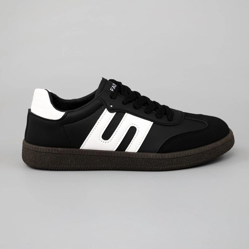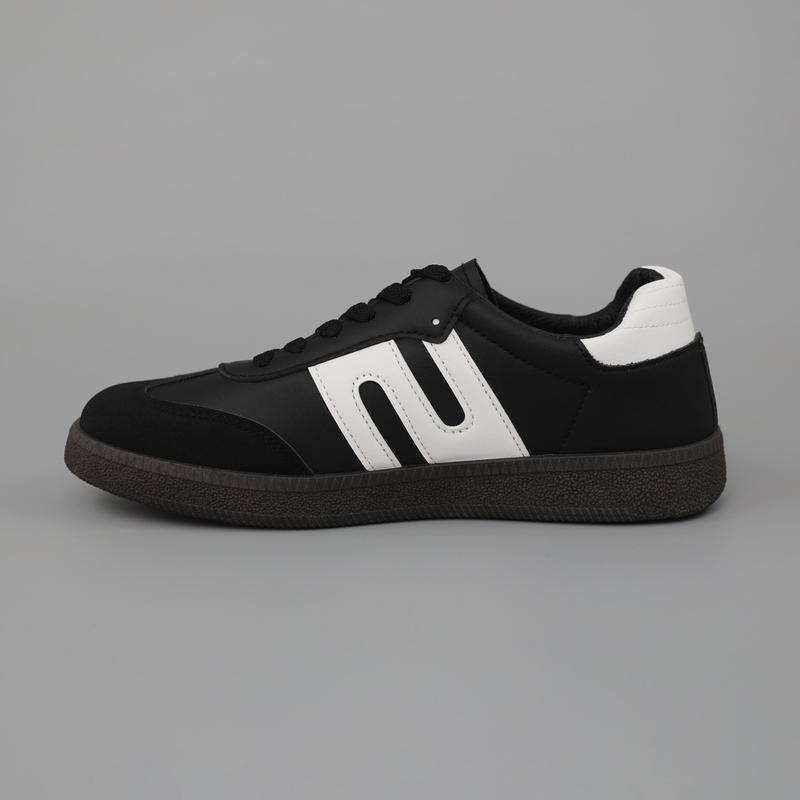 Чоловічі чорні зручні кеди для спорту, весняні, осінні, екошкіра/екозамша,