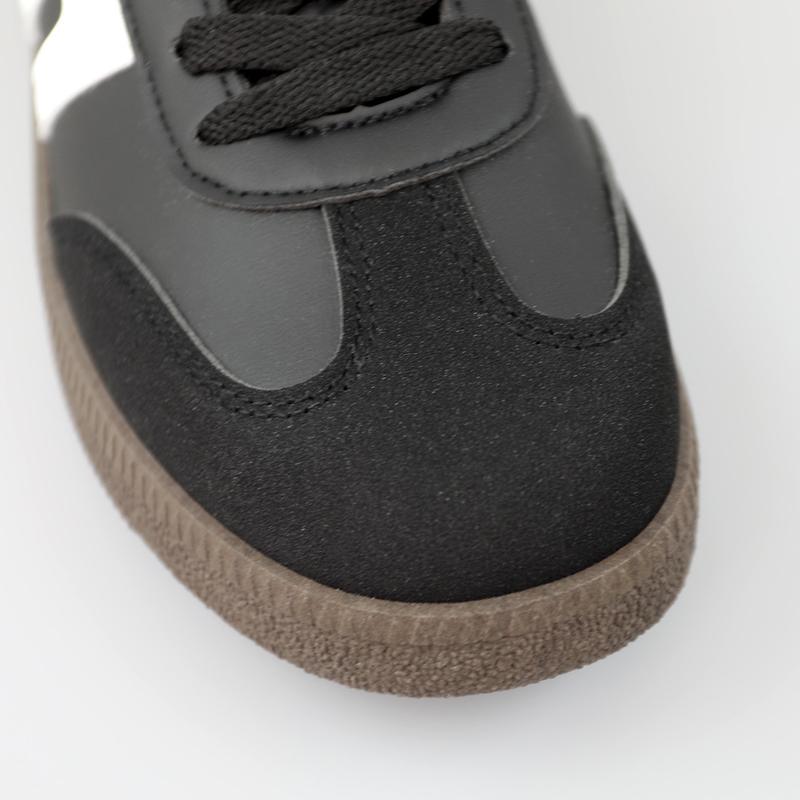 Стильні кеди в універсальному дизайні, виконані з поєднанням чорного кольору.