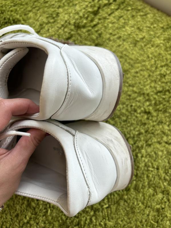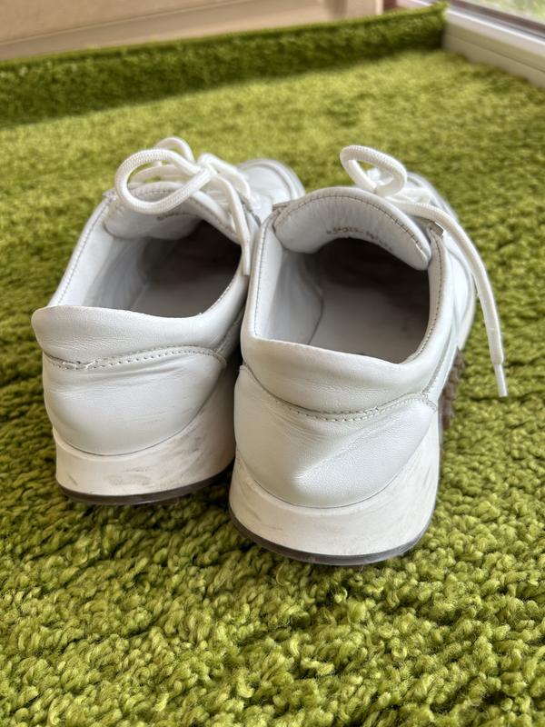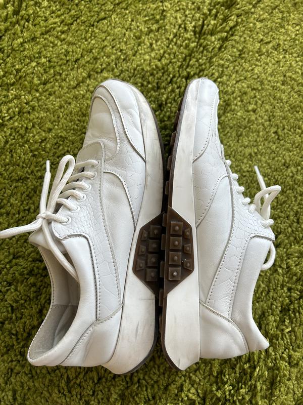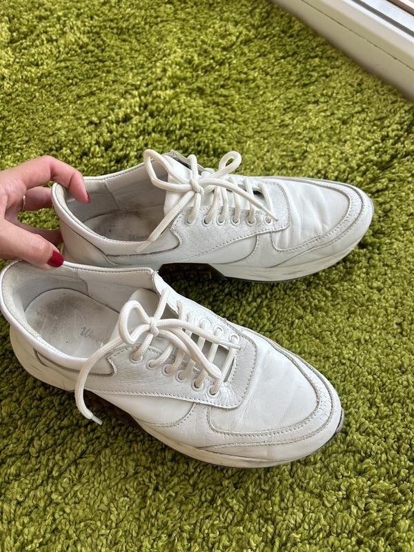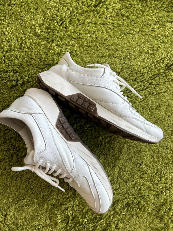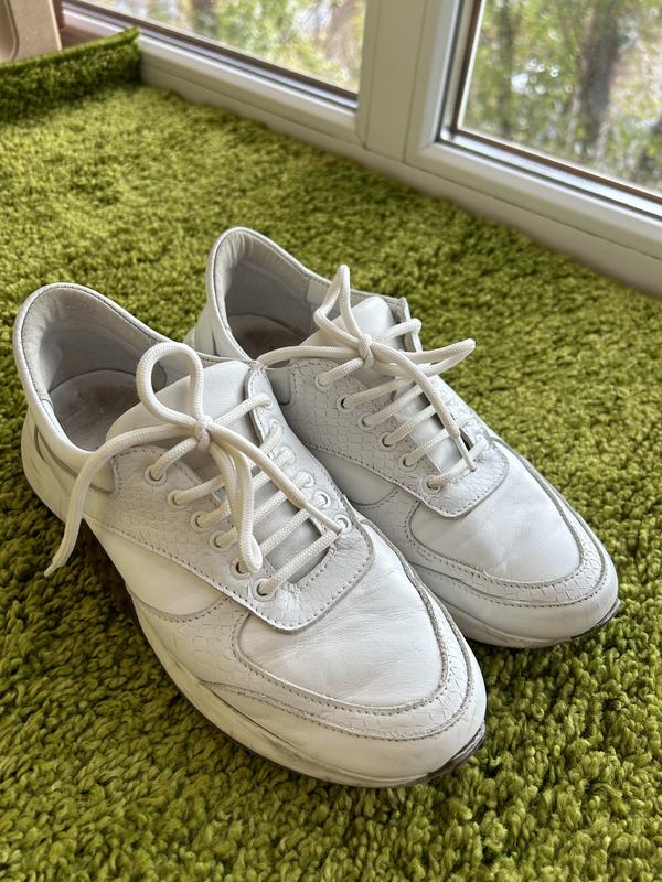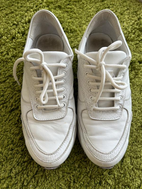 Білі шкіряні кросівки , розмір 38, повно мірні , не мало мірять . Виробник - українське виробництво Wave of shoes . Із недоліків - зламані задники.