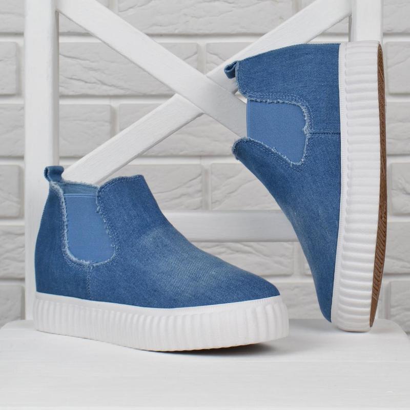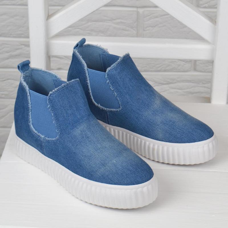 Джинсові кеди сліпони на платформі з прихованою танкеткою — дуже зручне,