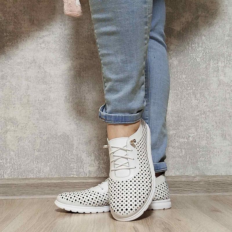 якісні стильні комфортні зручні жіночі шкіряні кросівки модні і сучасні весняно літні білі жіночі кросівки на шнуріаці-резинка український виробник фабричне взуття *верх натуральна шкіра,перфорація,білі *середина натуральна шкіряна устілка *підошва термо поліуретан,легка *на шнуріаці-резинка,зручно для взування і широкої ноги на високий підйом,на широку ногу ідеально на проблемну ніжку з кісточкою розміри повномірні з 36 по 42 в наявності 36р-23,5см 37-24см 38р-24,5см 39р-25,5см 40р-26см 41р-26,5см 42р-27см перед замовленням уточнюйте наявність розміріа