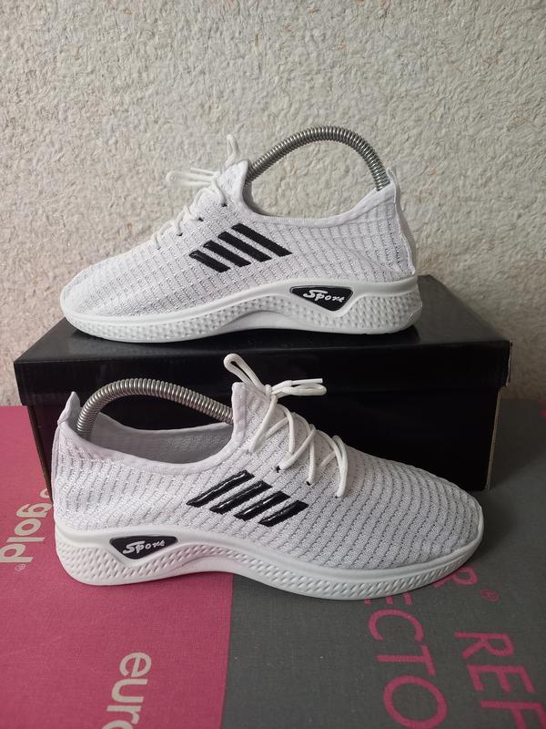 Новинка 2025. Кросівки жіночі білі літні текстильні sport. Легкі, зручні, яскраво-білого кольору. На середню та широку повноту ноги. Розмір 40 по устілці 24,5 см. Розмір 39 по устілці 24 см Вага пари - 370 г Підошва ПВХ, висота 1,5-3 см. Ваші ніжки нам будуть дякувати.