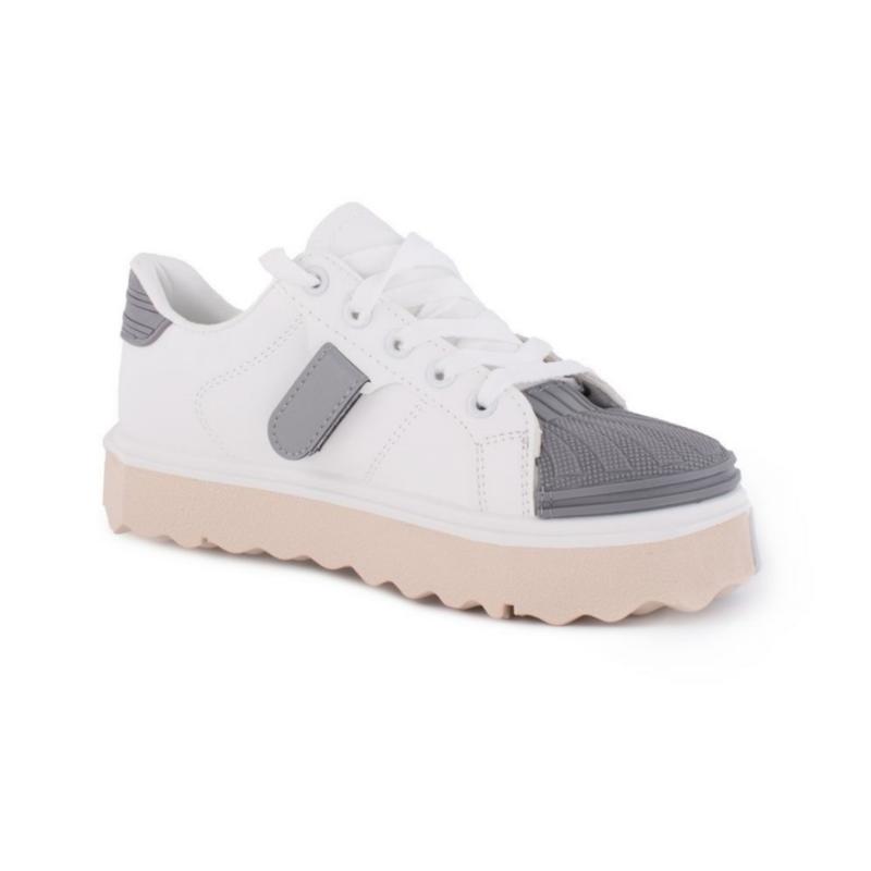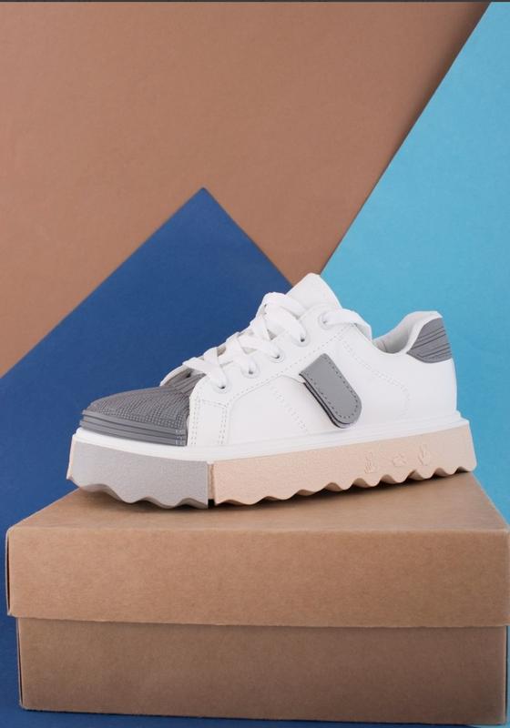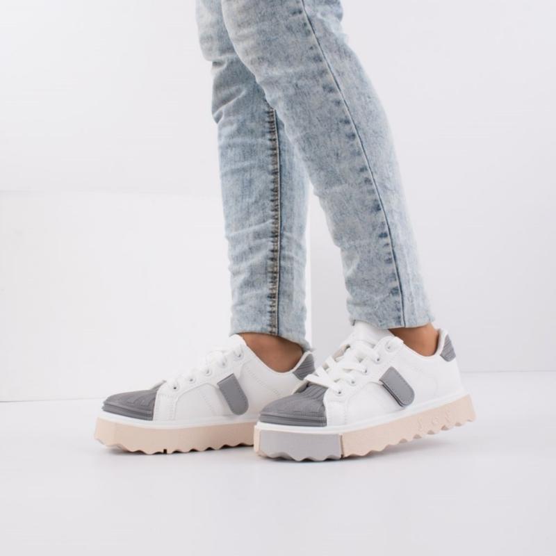 Матеріал верху: Екошкіра/гума Матеріал устілки: Екошкіра Колір: Біло-сірий Вид застібки: Шнурівка Сезон: Весна/осінь Розміри: 37, 38, 39, 40, 41 Приблизна розмірна сітка: Розмір 37: довжина стопи 23.5 см, висота платформи 3.5 див. Розмір 38: довжина стопи 24 см, висота платформи 3.5 див. Розмір 39: довжина стопи 24.5 см, висота платформи 3.5 див. Розмір 40: довжина стопи 25 см, висота платформи 3.5 див. Розмір 41: довжина стопи 25.5 см, висота платформи 3.5 див.