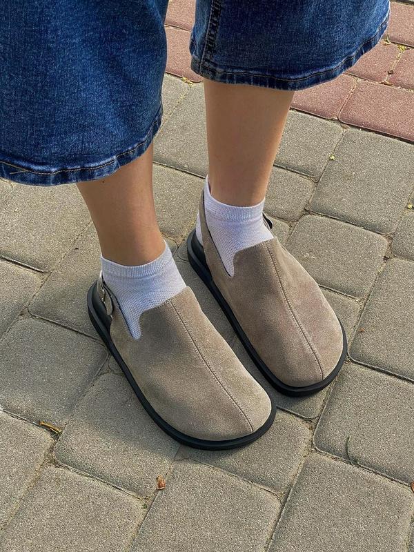 Стильні та комфортні клоги з натуральної замші. Анатомічна устілка забезпечує підтримку стопи та комфорт протягом усього дня. Ідеальні для щоденного використання, прогулянок чи роботи. Індивідуальне виготовлення та відправка від 1 до 5 днів. Відправка на будь яку пошту. Безпечна оплата, без передоплати. Розміри: 36-41