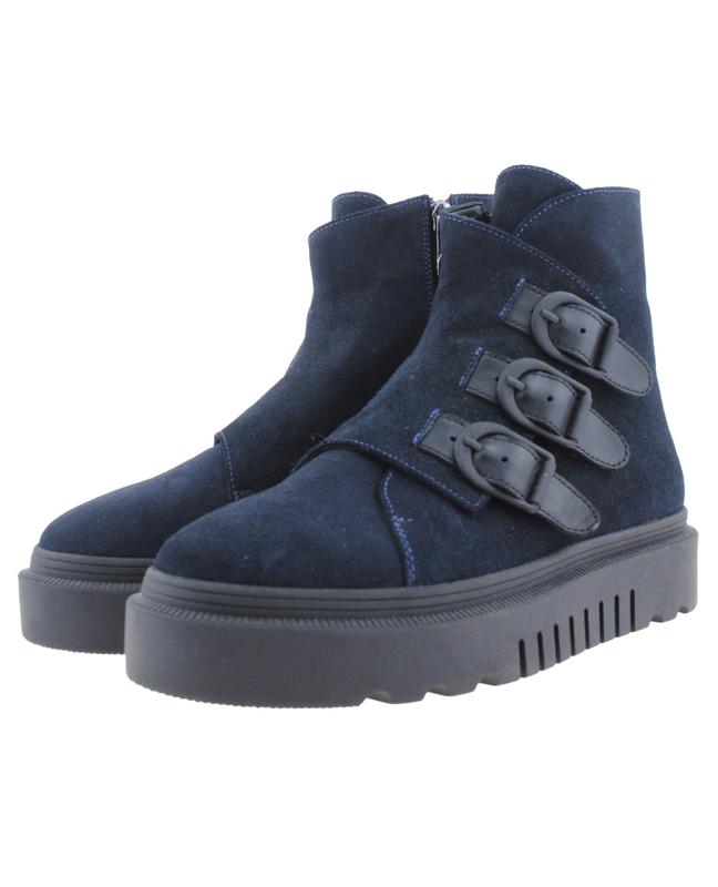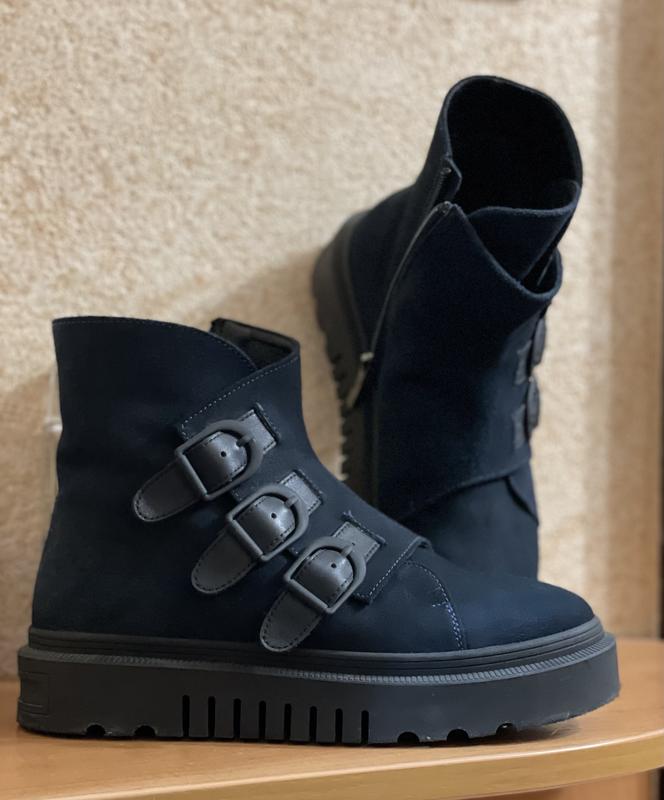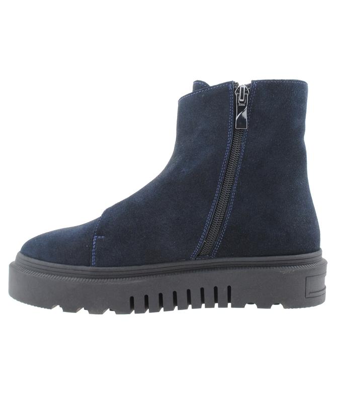 Зимовий Сезон Висота виробу Низькі Колір Темно-синій Матеріал верху Замша Матеріал підкладки Натуральне хутро Матеріал підошви Поліуретан Застібка Блискавка Країна-виробник товару Україна. Розмір 37/23,5см.