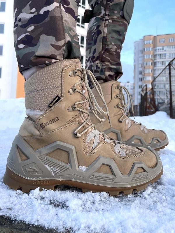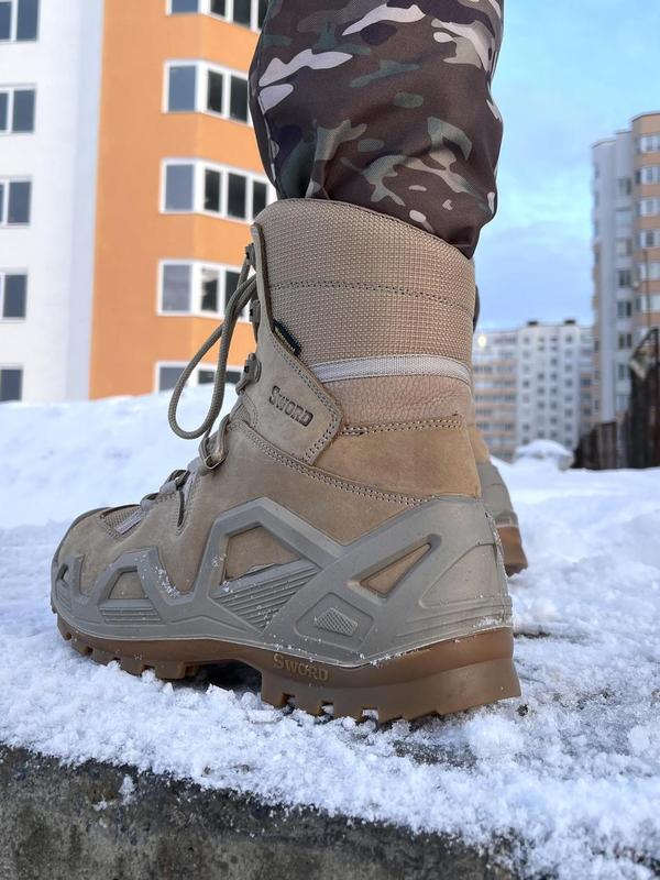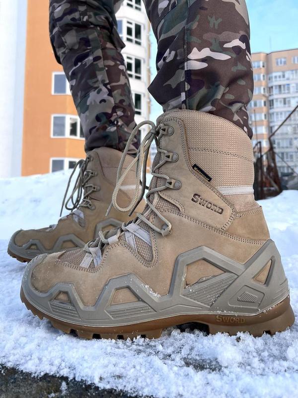 - Матеріал: дихаюча натуральна нубукова шкіра / водовідштовхувальні текстильні вставки з поліаміду Cordura.