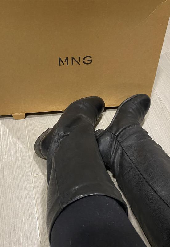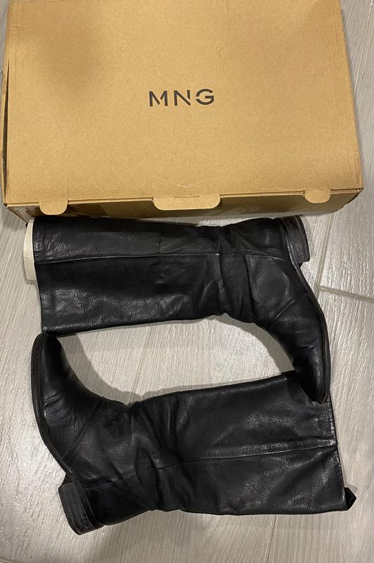 Шкіряні сапожки MANGOДуже зручні, Високі - 37 см. Довжина устілки 25.5 см. В гарному стані.Потребують незначного ремонту.