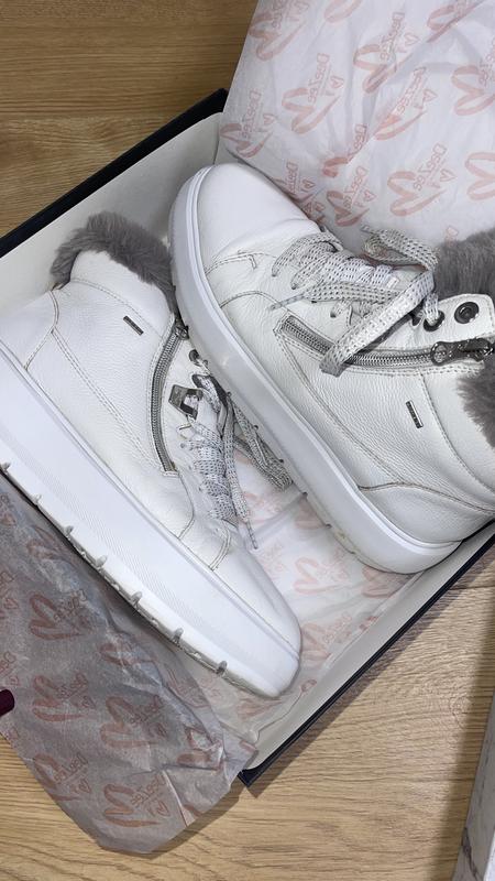 Оригінальні білі ботинки geox сапоги шкіряні з натуральним хутром шкіра