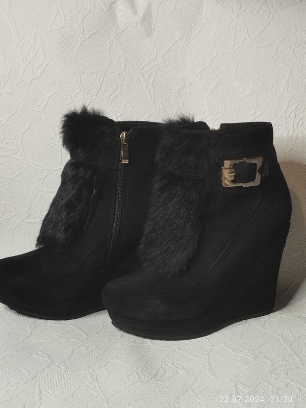 Дуже гарні зимові ботинки, зручні. Чорного кольору, на платформі. Мають вигляд 9 з 10 Розмір 40 (26см) Матеріал замша. Дуже теплі