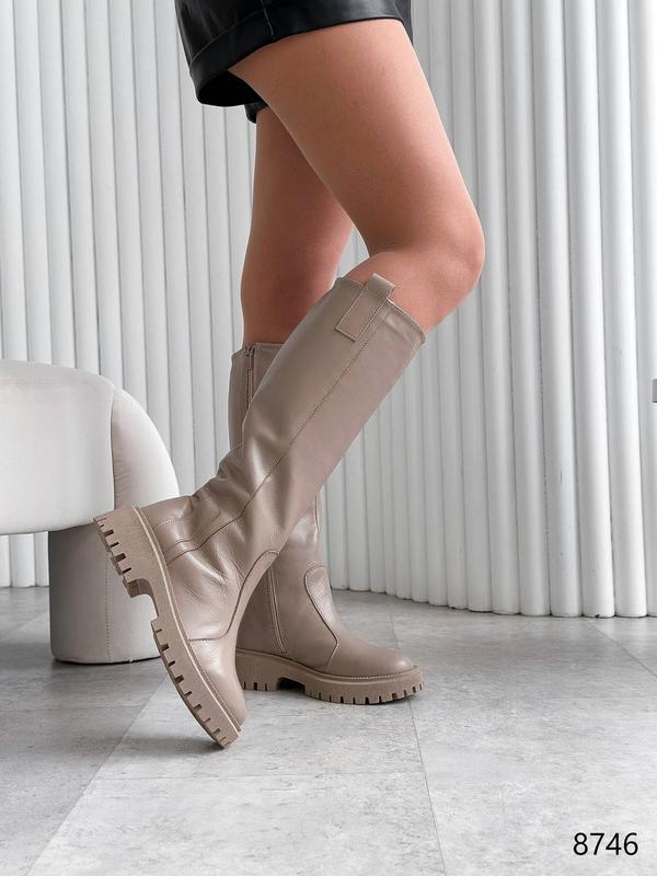 Жіночі шкіряні чоботи бежеві зимові чоботи натуральна шкіра зима