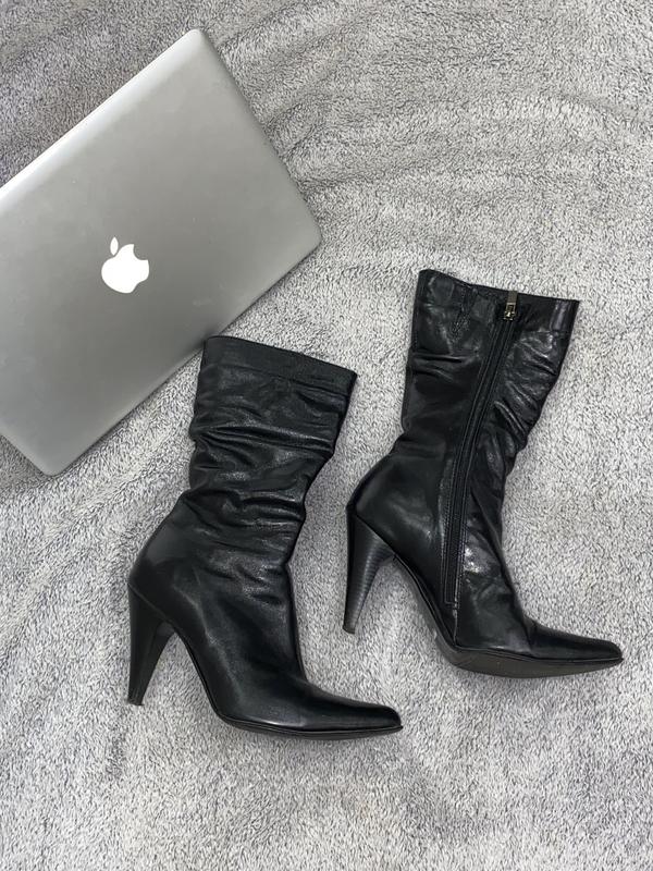 ефектні чоботи з гострим носом для справжньої модниці 🤍стан і вигляд нових, тільки каблуки знизу трішки стопталися, що зовсім непомітно 🤍розмір 38, але маломірить, на мій 37 сідають ідеально до кожного замовлення кладу подаруночок. дивіться ще мої інші оголошення. 🐚💒
