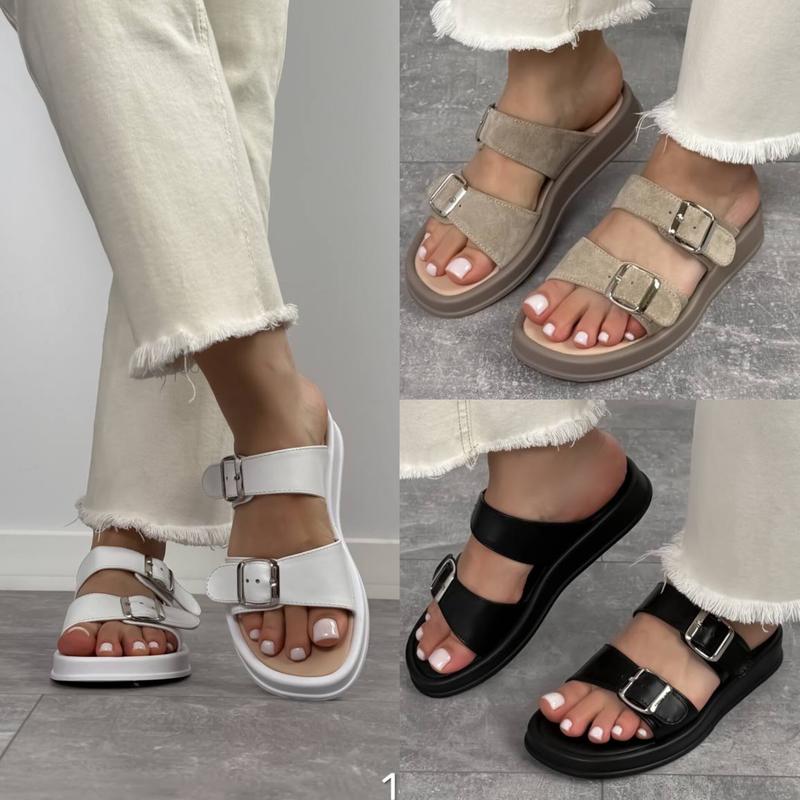 НОВИНКА❤️ КОД 1445 Шльопанці Колір : білий КОД 1446 Шльопанці Колір : чорний КОД 1447 Шльопанці Колір : бежевий Матеріал : Натуральна шкіра, замша Розміри : 36-40 (в розмір) Висота підошви : 3.5 cм 36 - 23,5 см 37 - 24,0 см 38 - 24.5 см 39 - 25,5 см 40 - 26 см