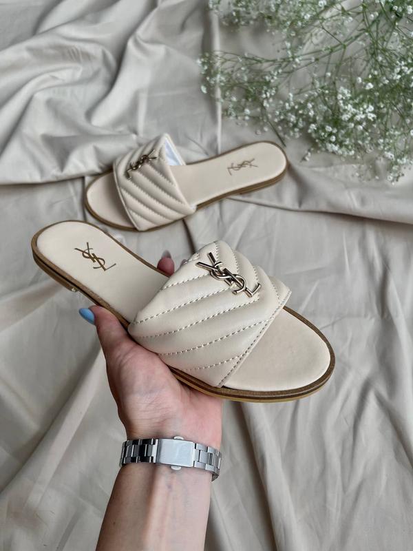 Yves Saint Lourent Slides 'Beige' • Матеріал: шкіра • Виробник: Туреччина 🇹🇷 • Комплект: оригінальна коробка, фірмовий пиловик • Розміри: 36-41 (36-22,5 см; 37-23,5 см; 38-24 см; 39-25 см; 40-25,5 см; 41-26 см) la.art. 0460