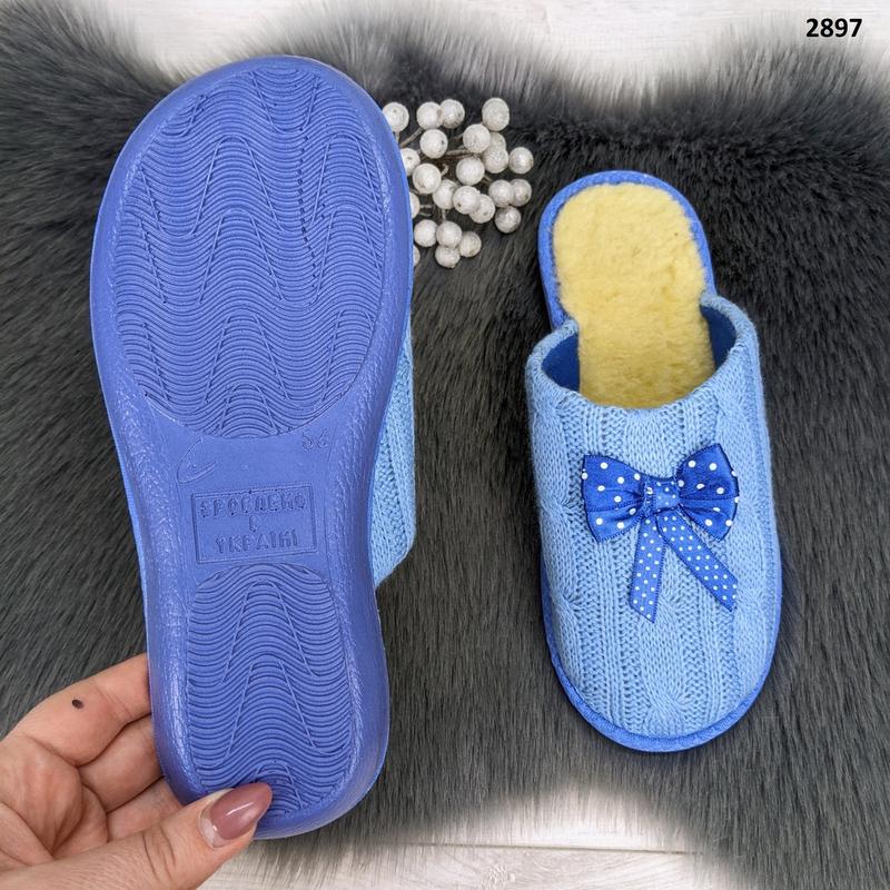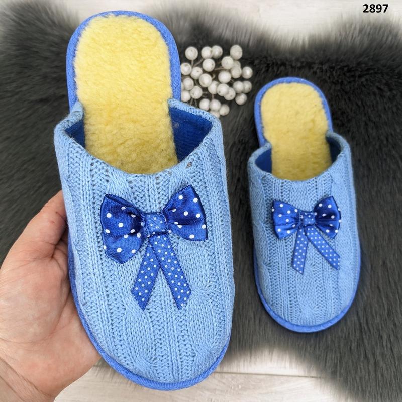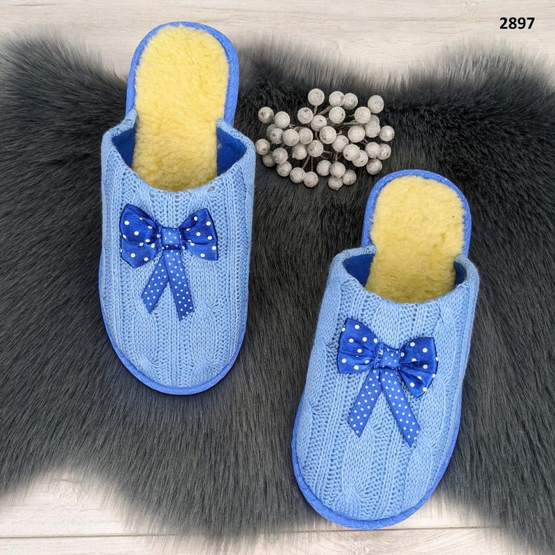 Женские комнатные тапочки Белста с закрытым носком. Верх выполнен с вязки с текстильной подкладкой, с бантиком, стелька мягкая с овчинки.