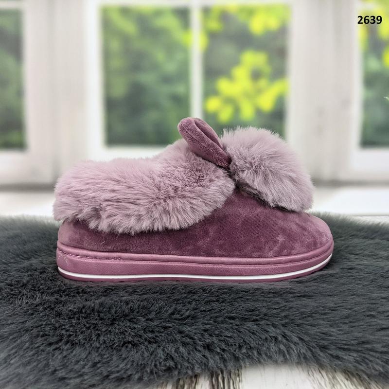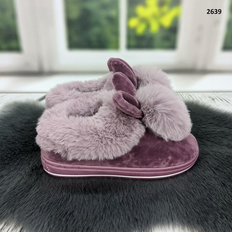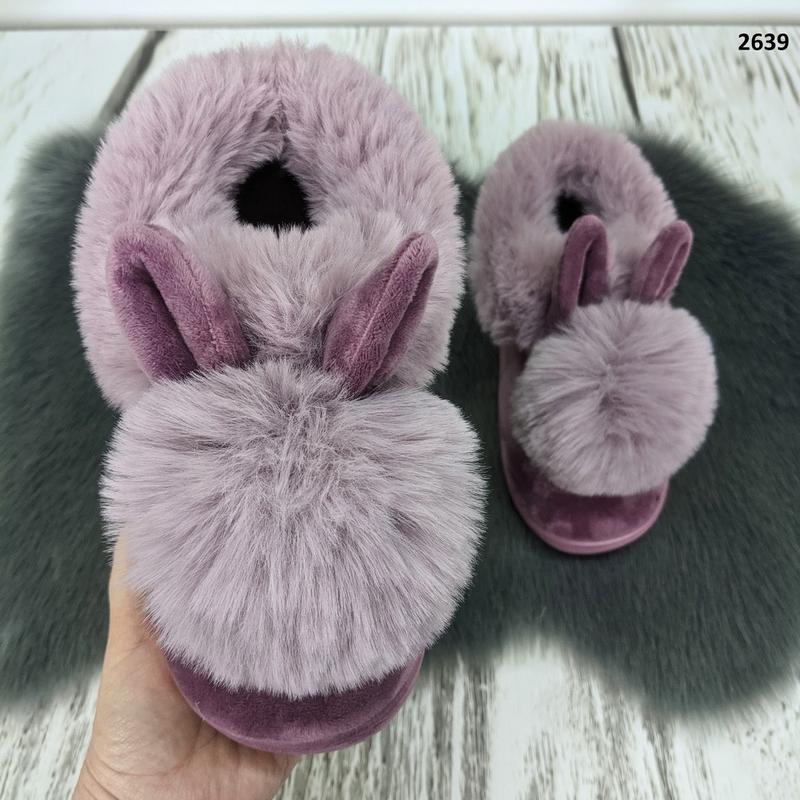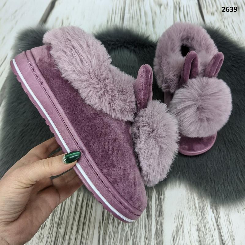 Шикарні пухнасті тапочки для дому з великим помпоном та вушками. М'які,