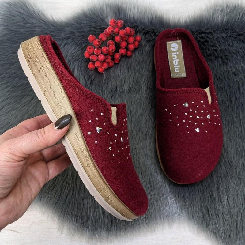 Тапочки домашні жіночі Inblu фетрові на поліуретановій підошві бордові 4252