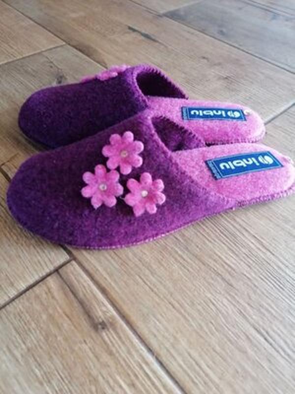 М"які , безшумні, теплі.Підходят для ламината та паркета.Матеріал фетр.На підошве шероховатий надпис, що б не ковзали36 - 23.5 см37 - 24 cm