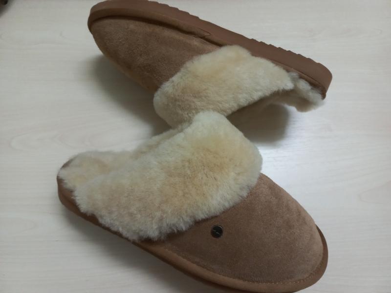 Превосходные домашние тапочки полностью натуральный замш и натуральная овчина очень-очень красивые лёгкие и удобные.одеты пару раз размер EURO 40-41длина по стельке 26-26.5 см шикарный вид смотрятся роскошно выглядит прилично изысканно мягкая и удобная подошва хорошо прошита качественная обувь которая порадует Вас осенью и зимой прослужит Вам долгое время не пожалеете рекомендую небольшой дефект немножко потерся мех на левом тапочки а так все целое очень-очень толстый мех очень-очень тёплые и удобные не пожалеете рекомендую.