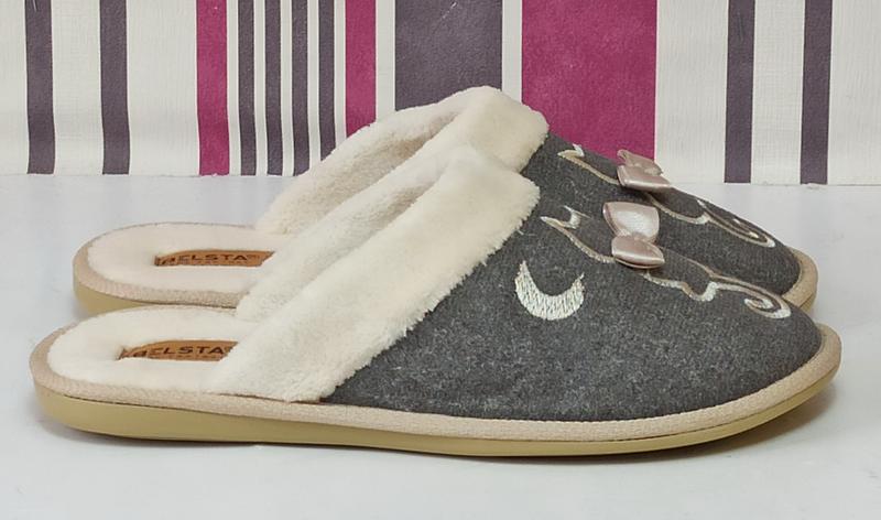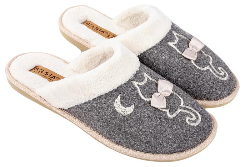 Елегантні кімнатні тапочки від виробника БЕЛСТА зроблені із замші та теплої, приємної на дотик махри. Модель прикрашена вишивкою Кішечки, підходить для носіння в осінньо-зимовий та весняний період.
