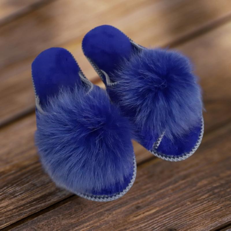 тапочки махровые с открытым носком.подошва - микропора.декор -большой помпон из натурального мехаразмер 41 - стелька 26см