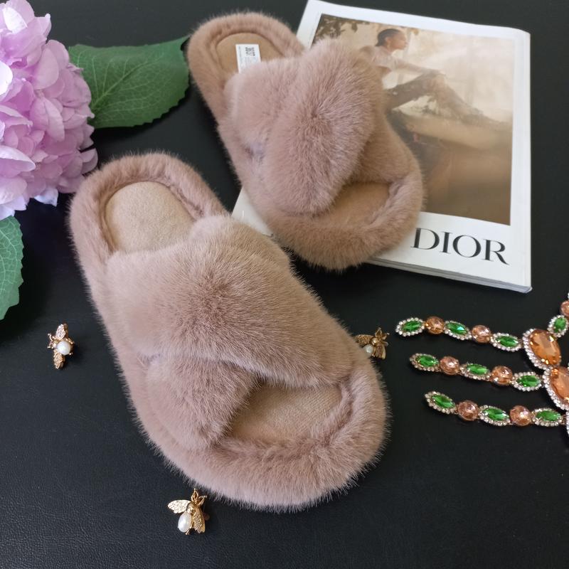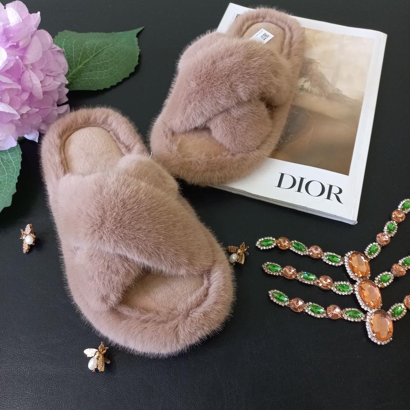 Стильні тапочки капці пухнасті жіночі хутряні теплі навхрест 4 кольори