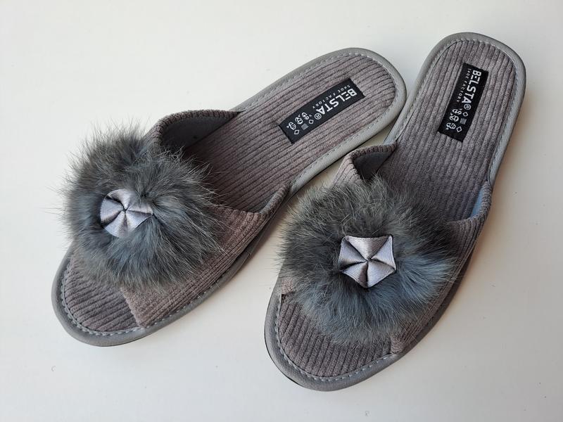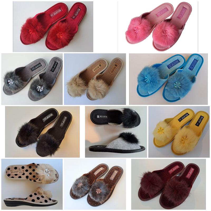 Капці з пушком на невисокій танкетці.Тканина верху буває різна(вельвет,велюр,рогожка),тому уточнюйте.Наявність розміру уточнюйте.36й буває дуже рідко.36й і 40й розмір дорожче на 30грн.Зараз 39й по акції-399грн