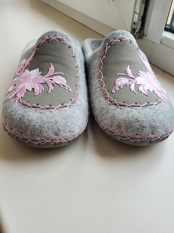 Женские войлочные тапочки изготовлены вручную из 100% овечьей шерсти. Декор возможен разных цветов. Подошва - натуральная кожа, мягкая, ноская, не скользит. Тапки формуются на профессиональных обувных колодках, поэтому имеют устойчивую форму и очень комфортно сидят на ножке. Для изготовления (в зависимости от сложности заказа) требуется от 7 - 10 дней.Тапочки из шерсти подходят для любого сезона, как летом, так и зимой, ножка в них не потеет и не мёрзнет. Информацию о лечебных свойствах войлока и уход за войлочной обувью прилагаю в мини-книжечке "Инструкция по уходу за войлочной обувью". И всё таки, очень кратко, хочу сказать, что войлок осуществляет лечение:- усталости- артрита- боли в мышцах- суставной ломоты- нарушенного кровообращения- стресса- простудных и воспалительных заболеваний- шпоры- аллергии.Благодаря содержанию в шерсти ланолина (овечьего жира), который ещё называют животным воском, ноги самопроизвольно получают питание и смягчение кожи. Это лучший и полезный подарок для родных и друзей.Додаткові характеристики: Колір: СірийМатеріал верху: ВовнаМатеріал підкладки: ОвчинаРозмір жіночого взуття: 38Сезон: Весна/осіньСезон: ЗимаСезон: ЛітоТип: Масажні тапочкиТип: Капці-в'єтнамкиТовар виготовляється на замовлення