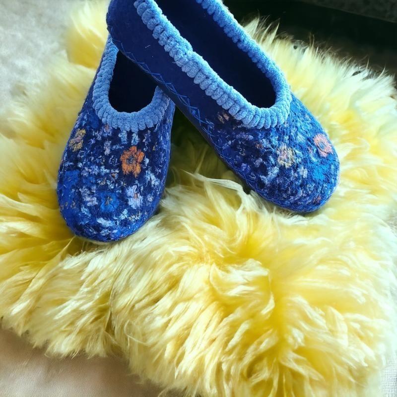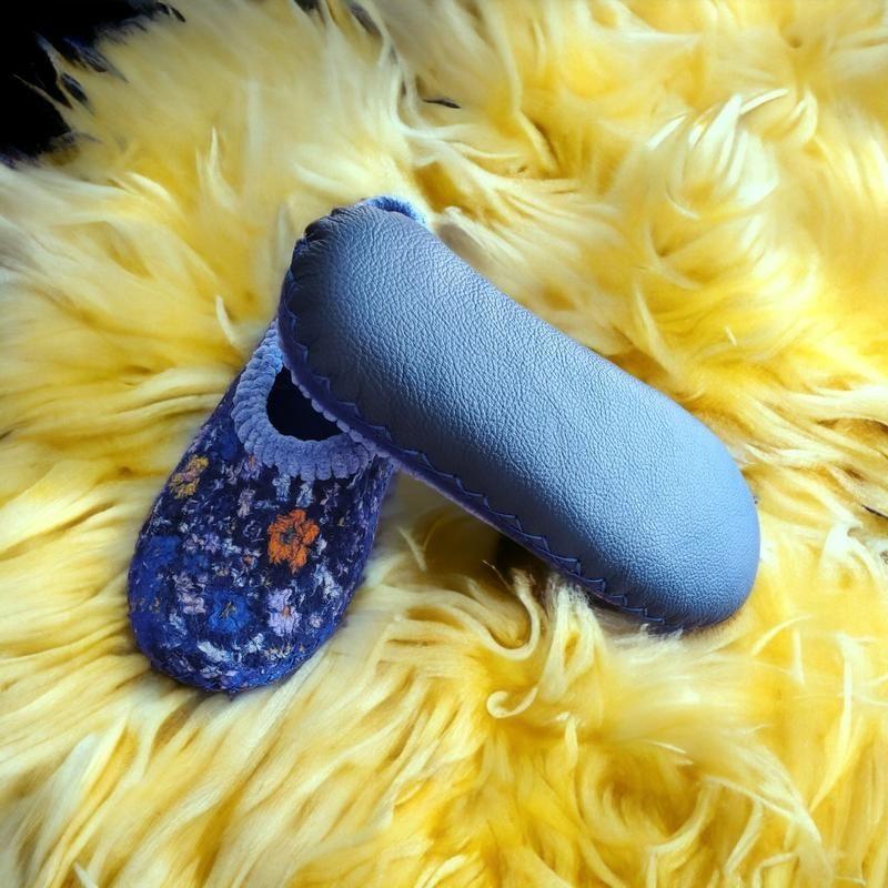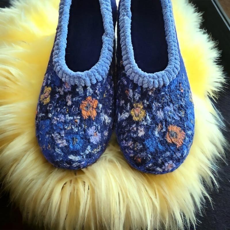 Женские войлочные тапочки изготовлены вручную из 100% овечьей шерсти. Подошва - натуральная кожа, мягкая, ноская, не скользит. Тапки формуются на профессиональных обувных колодках, поэтому имеют устойчивую форму и очень комфортно сидят на ножке. Для изготовления (в зависимости от сложности заказа) требуется от 7 - 10 дней.Тапочки из шерсти подходят для любого сезона, как летом, так и зимой, ножка в них не потеет и не мёрзнет. Информацию о лечебных свойствах войлока и уход за войлочной обувью прилагаю в мини-книжечке "Инструкция по уходу за войлочной обувью". И всё таки, очень кратко, хочу сказать, что войлок осуществляет лечение: