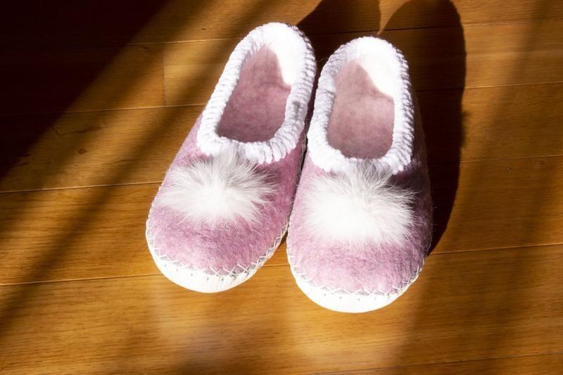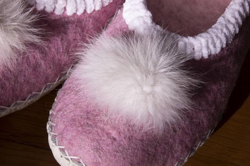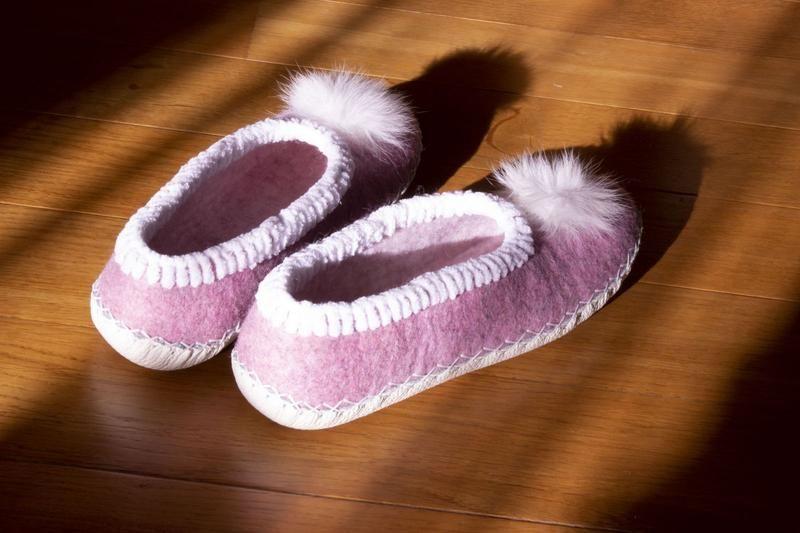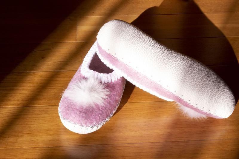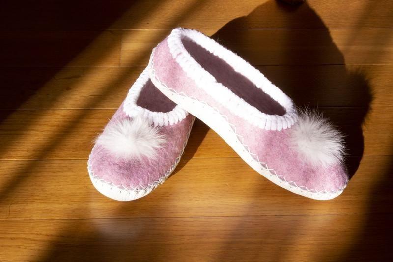 Женские войлочные тапочки изготовлены вручную из 100% овечьей шерсти. Подошва - натуральная кожа, мягкая, ноская, не скользит. Тапки формуются на профессиональных обувных колодках, поэтому имеют устойчивую форму и очень комфортно сидят на ножке. Для изготовления (в зависимости от сложности заказа) требуется от 7 - 10 дней.Тапочки из шерсти подходят для любого сезона, как летом, так и зимой, ножка в них не потеет и не мёрзнет. Информацию о лечебных свойствах войлока и уход за войлочной обувью прилагаю в мини-книжечке "Инструкция по уходу за войлочной обувью". И всё таки, очень кратко, хочу сказать, что войлок осуществляет лечение: