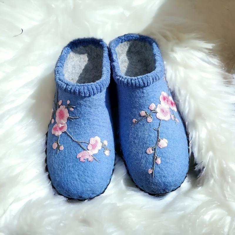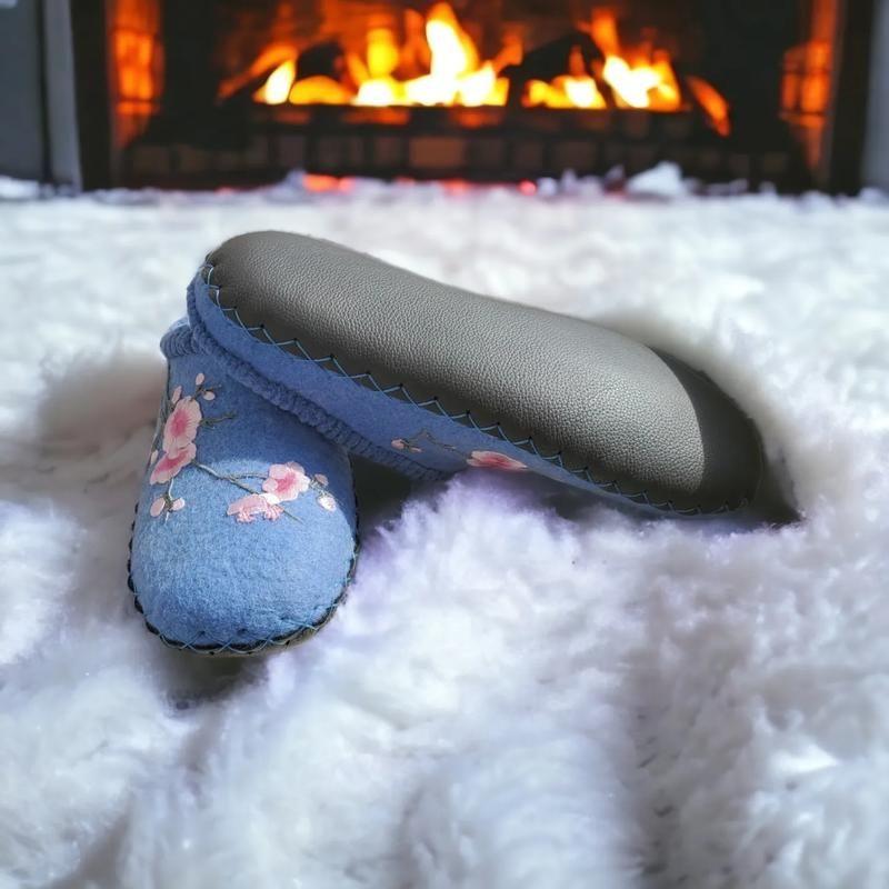 Женские войлочные тапочки изготовлены вручную из 100% овечьей шерсти. Подошва - натуральная кожа, мягкая, ноская, не скользит. Тапки формуются на профессиональных обувных колодках, поэтому имеют устойчивую форму и очень комфортно сидят на ножке. Для изготовления (в зависимости от сложности заказа) требуется от 7 - 10 дней.Тапочки из шерсти подходят для любого сезона, как летом, так и зимой, ножка в них не потеет и не мёрзнет. Информацию о лечебных свойствах войлока и уход за войлочной обувью прилагаю в мини-книжечке "Инструкция по уходу за войлочной обувью". И всё таки, очень кратко, хочу сказать, что войлок осуществляет лечение: