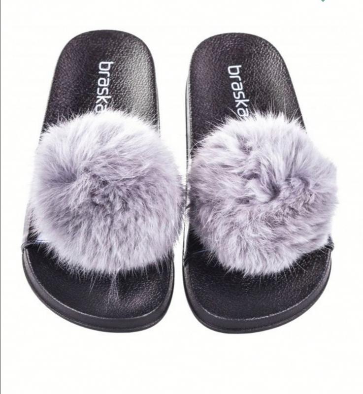 Стильні тапки Braska (шльопанці) з помпоном з натурального хутра. Зручна якісне взуття. Розмір 38, устілка 24,5 див. Дуже стильно виглядають. Нові в коробці Відправка по пред.оплату 📢Для покупки напишіть мені куди/кому відправити сюди в смс.
