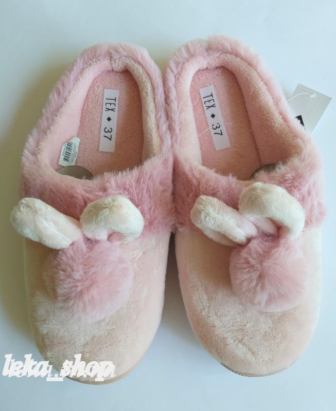 Женские тапочки с помпонами TEX Carrefour розового цвета с шариками-помпонами, подошва резиновая. Легкие и удобные, отличный вариант для повседневной носки.