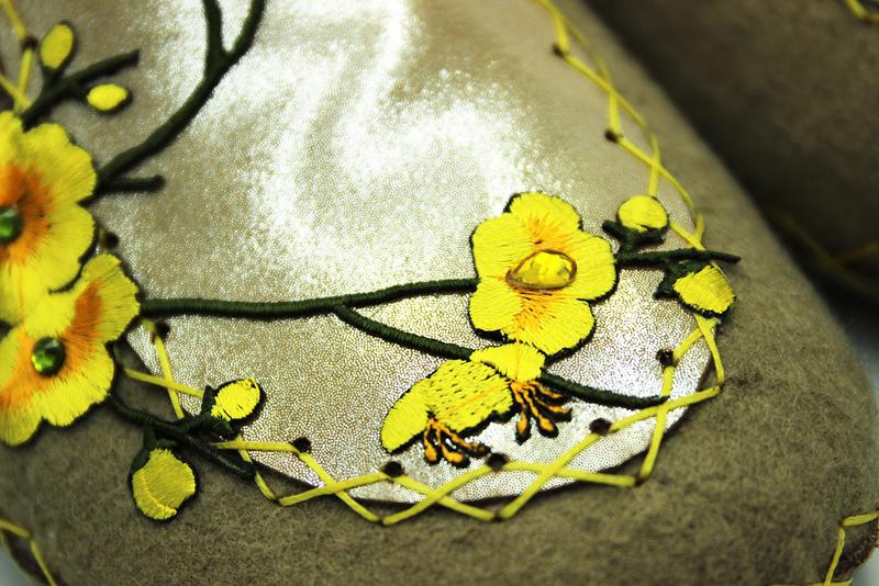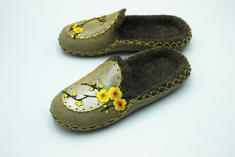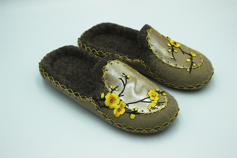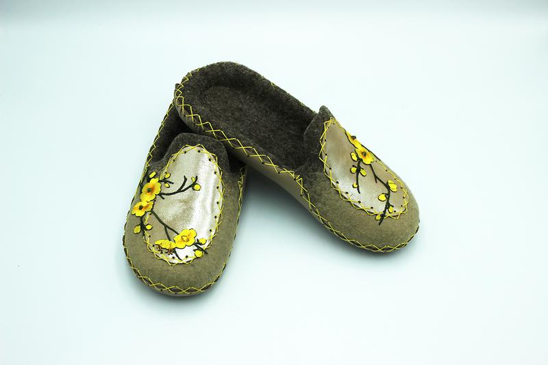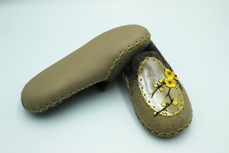 Женские войлочные тапки изготовлены вручную из 100% овечьей шерсти. Подошва - натуральная кожа, мягкая, ноская, не скользит. Тапки формуются на профессиональных обувных колодках, поэтому имеют устойчивую форму и очень комфортно сидят на ножке. Для изготовления (в зависимости от сложности заказа) требуется от 7 - 10 дней.Тапочки из шерсти подходят для любого сезона, как летом, так и зимой, ножка в них не потеет и не мёрзнет. Информацию о лечебных свойствах войлока и уход за войлочной обувью прилагаю в мини-книжечке "Инструкция по уходу за войлочной обувью". И всё таки, очень кратко, хочу сказать, что войлок осуществляет лечение: