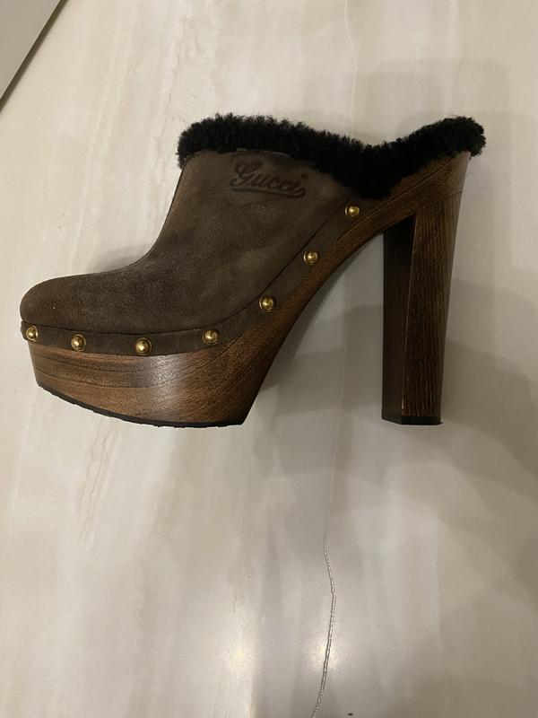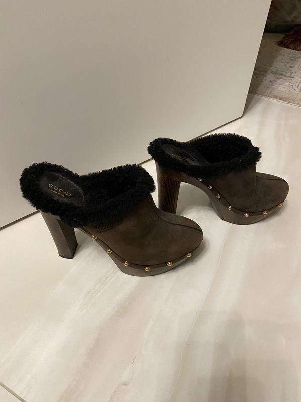 Сабо Gucci на високих підборах, розмір 40. Коричневі на цегейці.