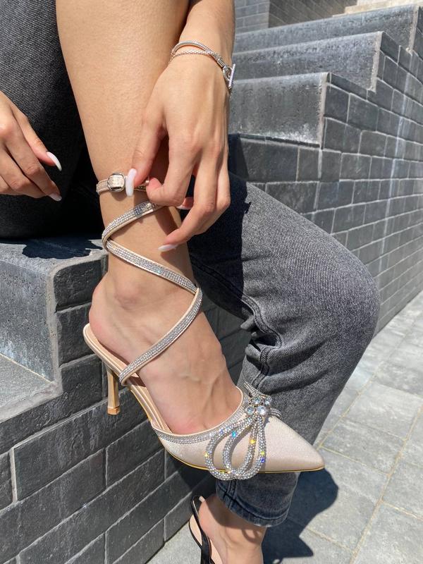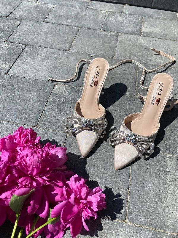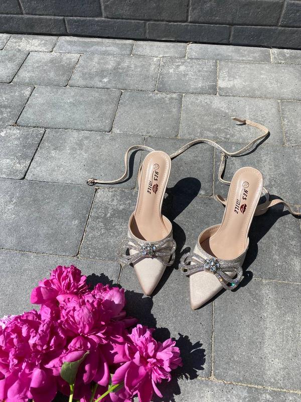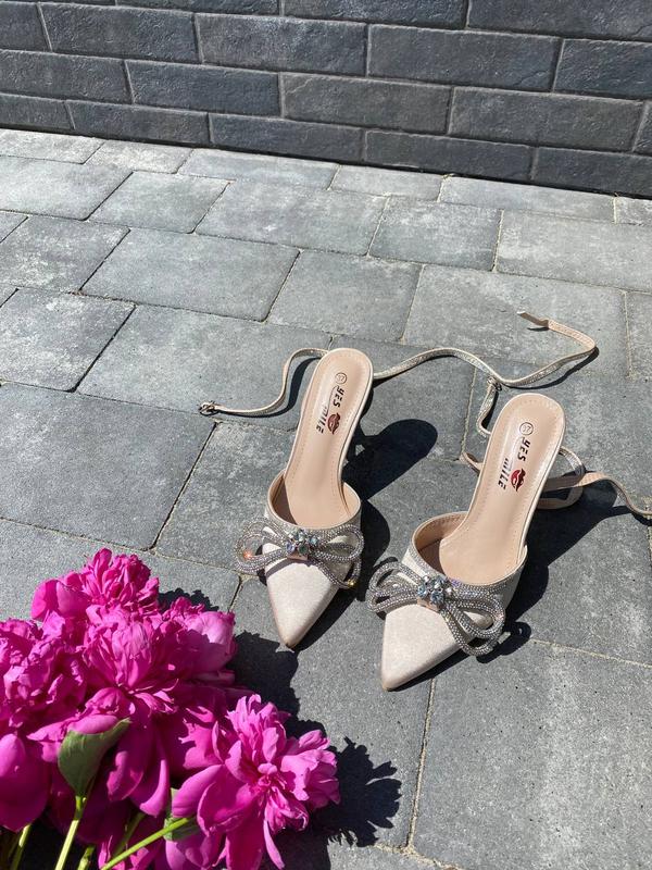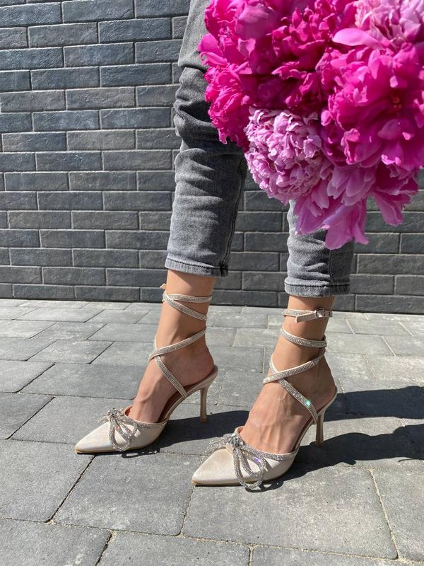 Туфлі на підборах з бантикомМатеріал: атласКолір бежевийКаблук 8 смВиробництво: УгорщинаРозмір у розмір
