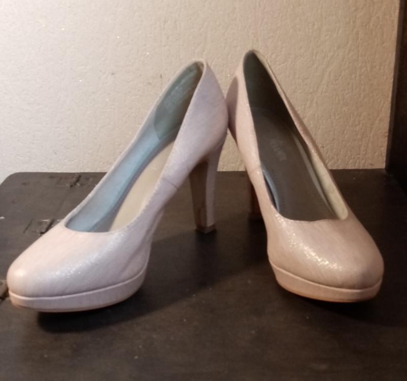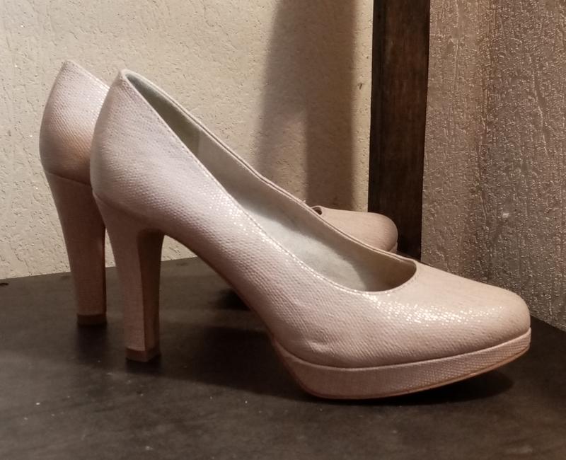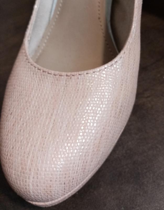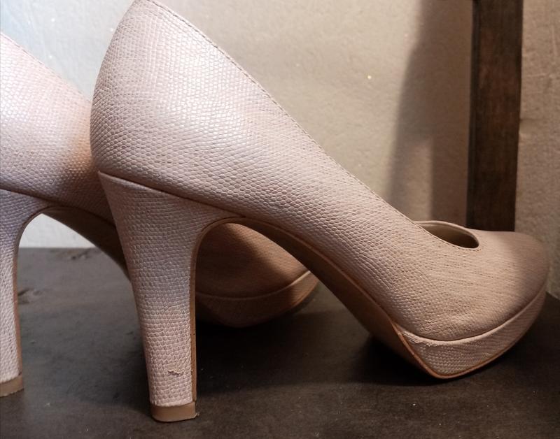 Туфлі рожеві еко шкіра зі зміїним принтом.Розмір 37.Довжина по стельці - 22 см.Висота платформи - 2 см.Висота каблука - 9 см.Стан гарний, є незначні царапини видно на останньому фото.