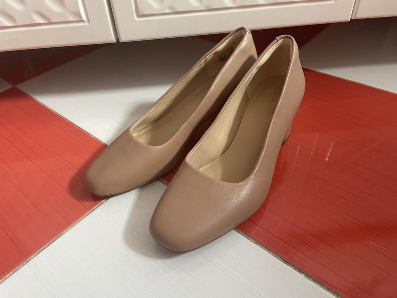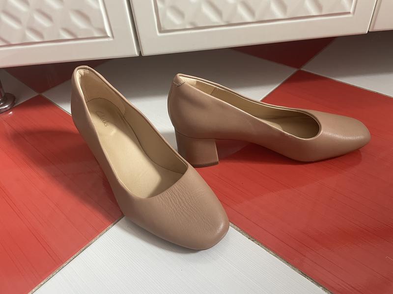 Шикарные удобные нюдовые кожаные туфли лодочки clarks/100% кожа В идеальном состоянии Натуральная кожаРазмер указан uk4 1/2/us7/eu37 1/2 -на наш 37 размер ,длина 24,5 см ,по ширина 7,5Каблук 5 см Перешлю
