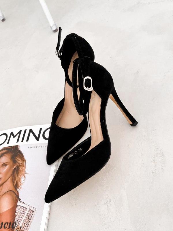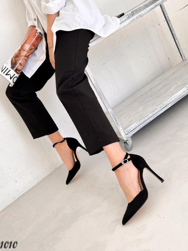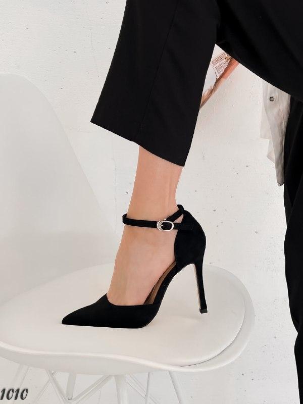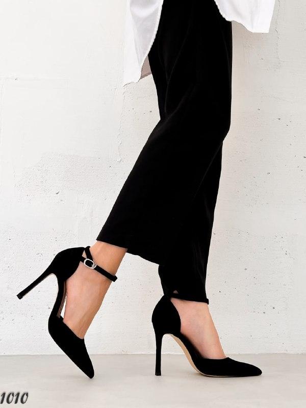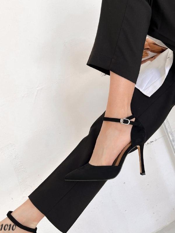💗Жіночі чорні туфлі на шпильці еко-замша весна осінь