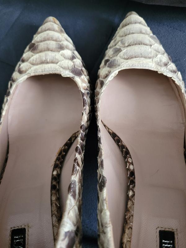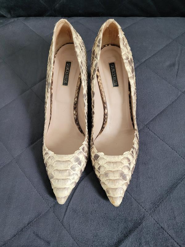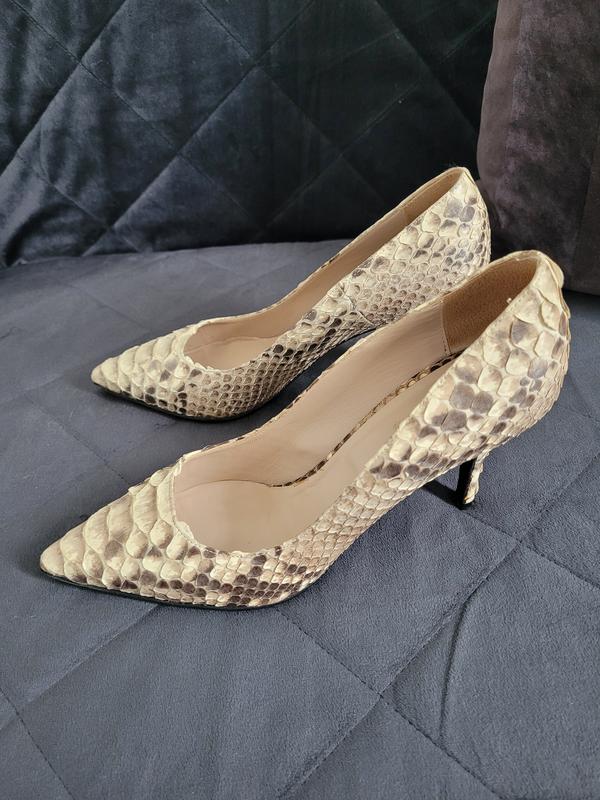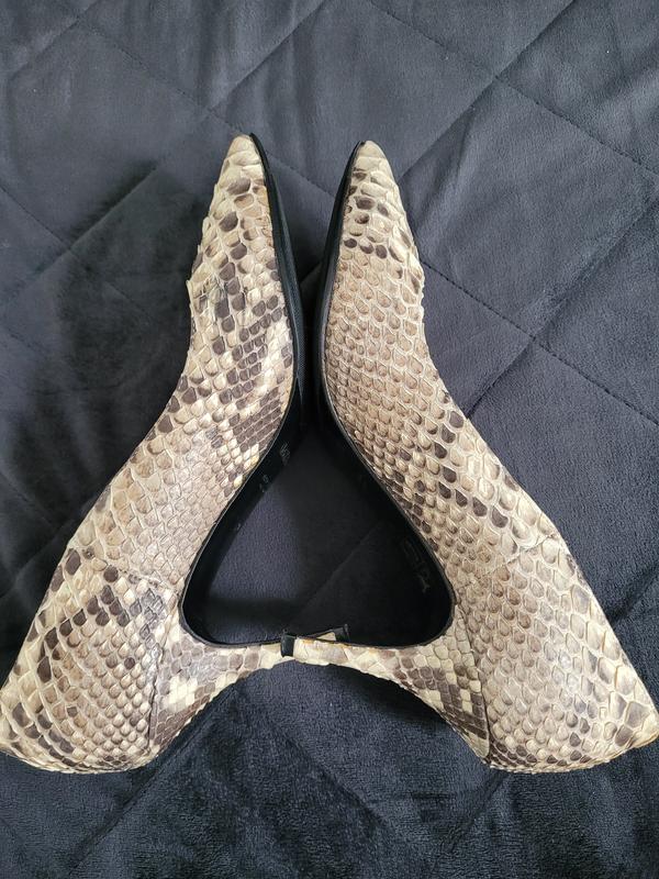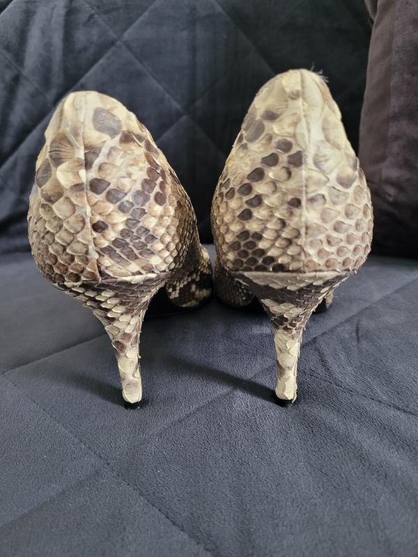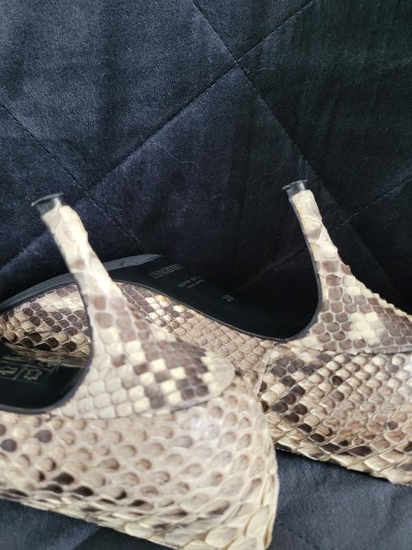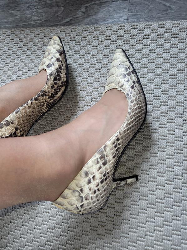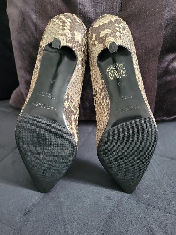 Чудовезні вінтажні лімітовані човники Слип george Rech,оригінал ,стан нових, 1 раз взуті,не потребують ремонту, натуральна шкіра пітона, не гладка, шершава, що додає свого шарму, на стопу 25 см,виробник Італія. Без коробки,в пильнику Stella Mc Cartney(як зберігала в шафі,так й віддаю,бо тримати