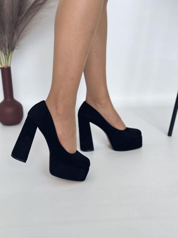 Жіночі замшеві туфлі на підборах з платформоюкод 2843Колір: чорний Матеріал: еко-замш Каблук 12 смПлатформа 4 см Розмір в розмір 36-4036- 23,5 см37- 24 см38- 24,5 см39- 25,5 см 40- 26 см