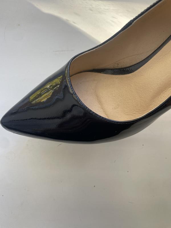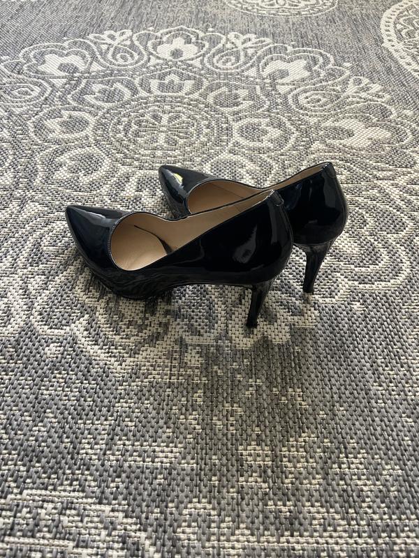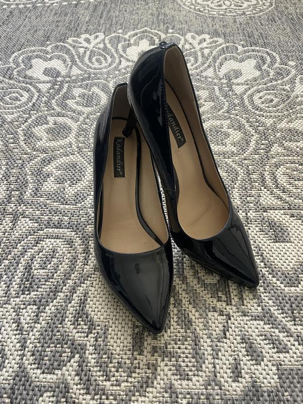 Лаковані туфлі човники в темно сині, 37 розмір. Краще підійдуть на 36. Зручні. Колір темно-синій, при штучному освітленні як чорний. Стан ідеальний.