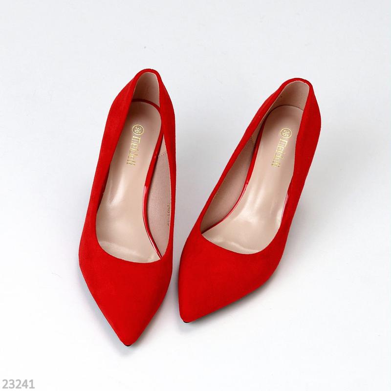 Код 23241Розміри 36-40Туфлі "Laura"Матеріал - ЕкозамшаВсередині - Еко.шкір.підкладКолір - ЧервонийКаблук - 8,5смНа середню стопуРозмір у розмір36-23,537-2438-24,539-2540-25,5