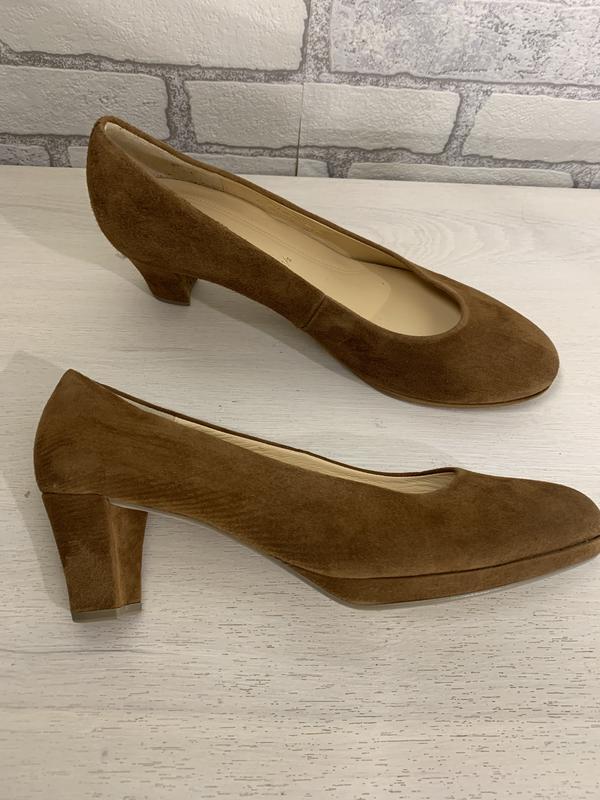 Витончені туфлі від Gabor, нові, не ношені! Високоякісна замша зверху, пухнаста! Всередині натуральна шкіра! Стійка колодка, маленький підбор, який взагалі не відчувається! Розмір 6,5 тобто 39,5 Устілка 26 см Каблук 6 см Підійде на не широку ніжку!